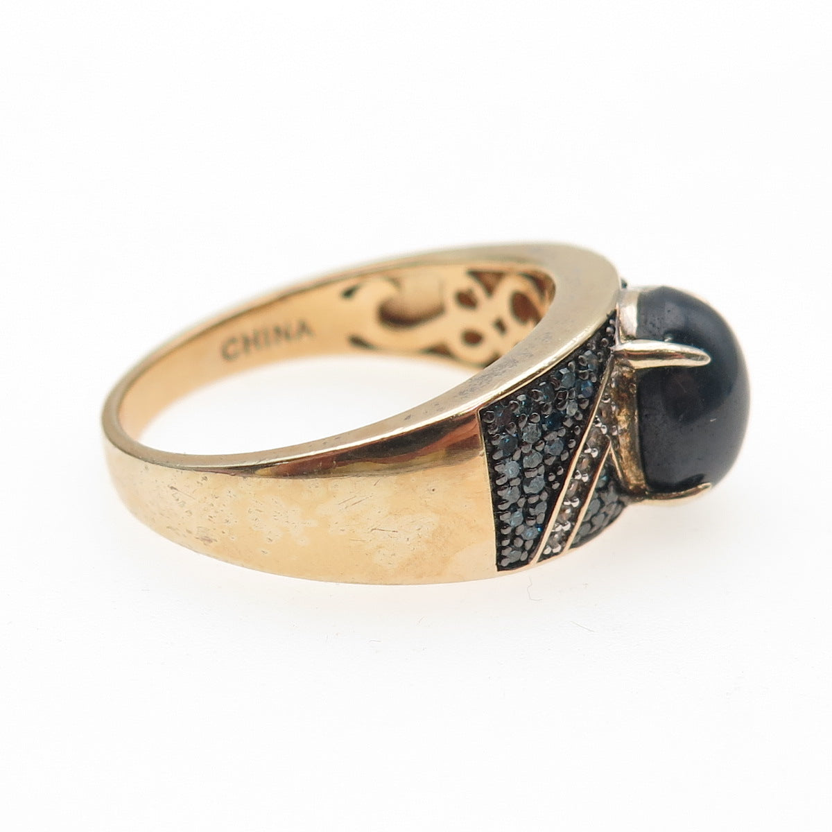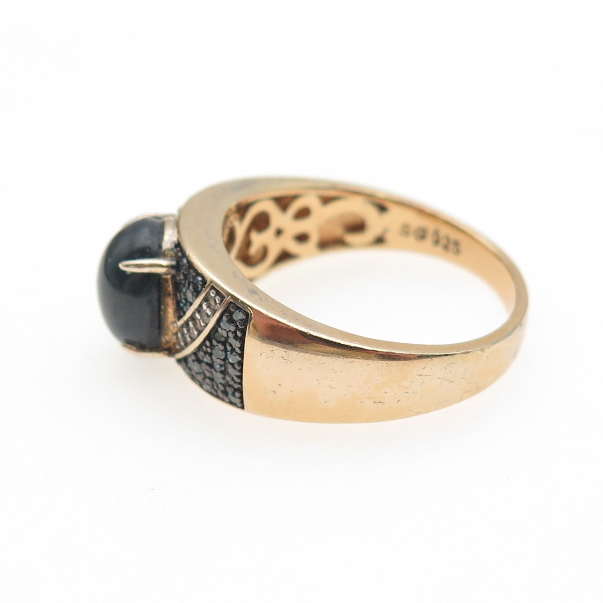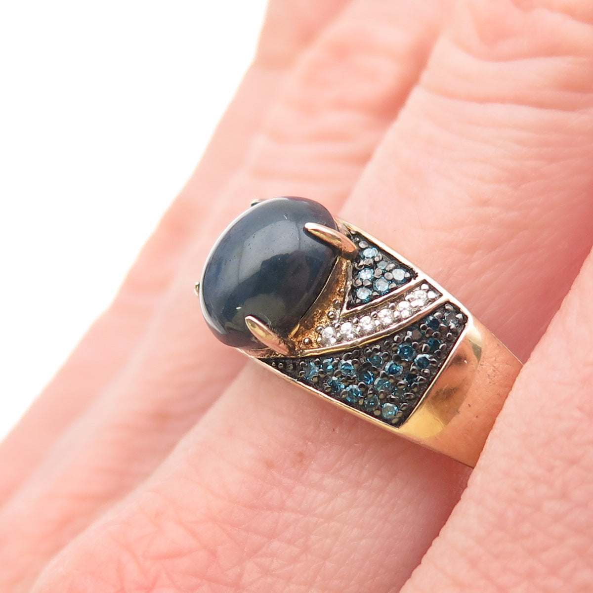 925 Sterling Gold Plated Blue Diamond Star Sapphire & White Topaz Ring Size 11