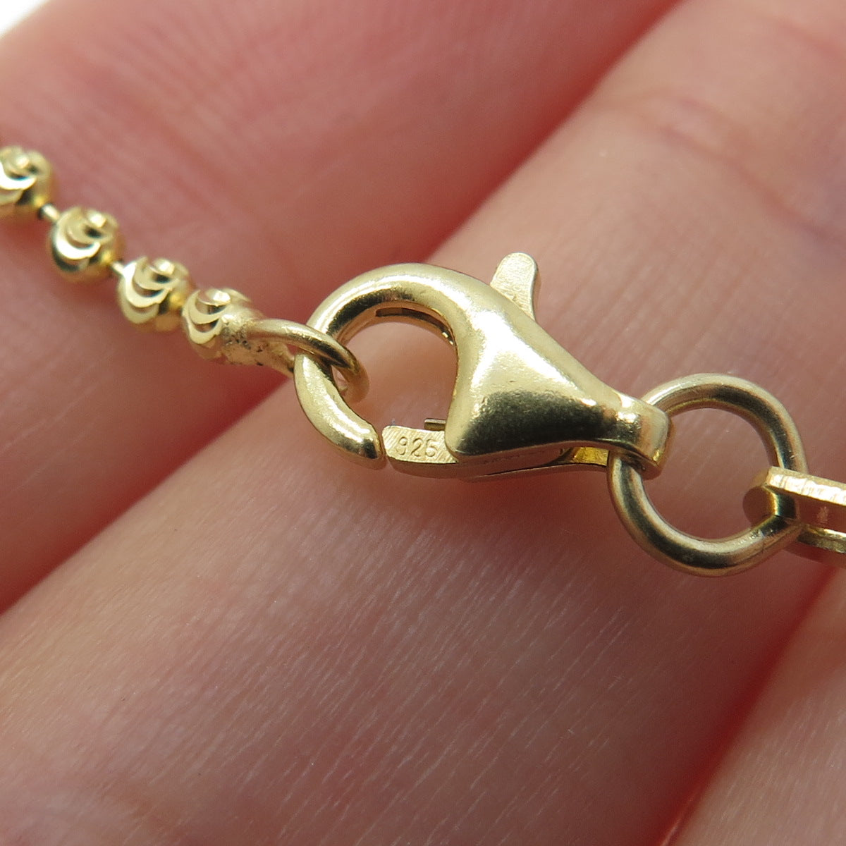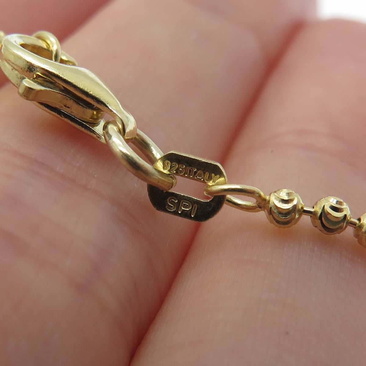 925 Sterling Gold Plated SPI Italy Diamond-Cut Ball Beaded Chain Necklace 28"