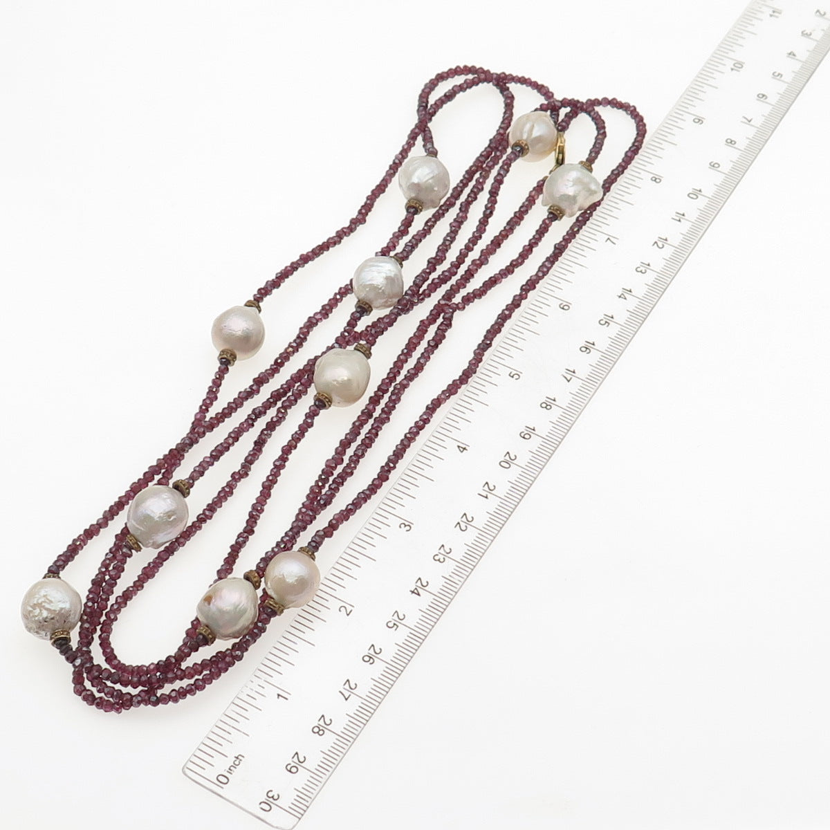 925 Sterling Gold Plated Vintage Real Baroque Pearl & Crystal Belly Necklace 72"