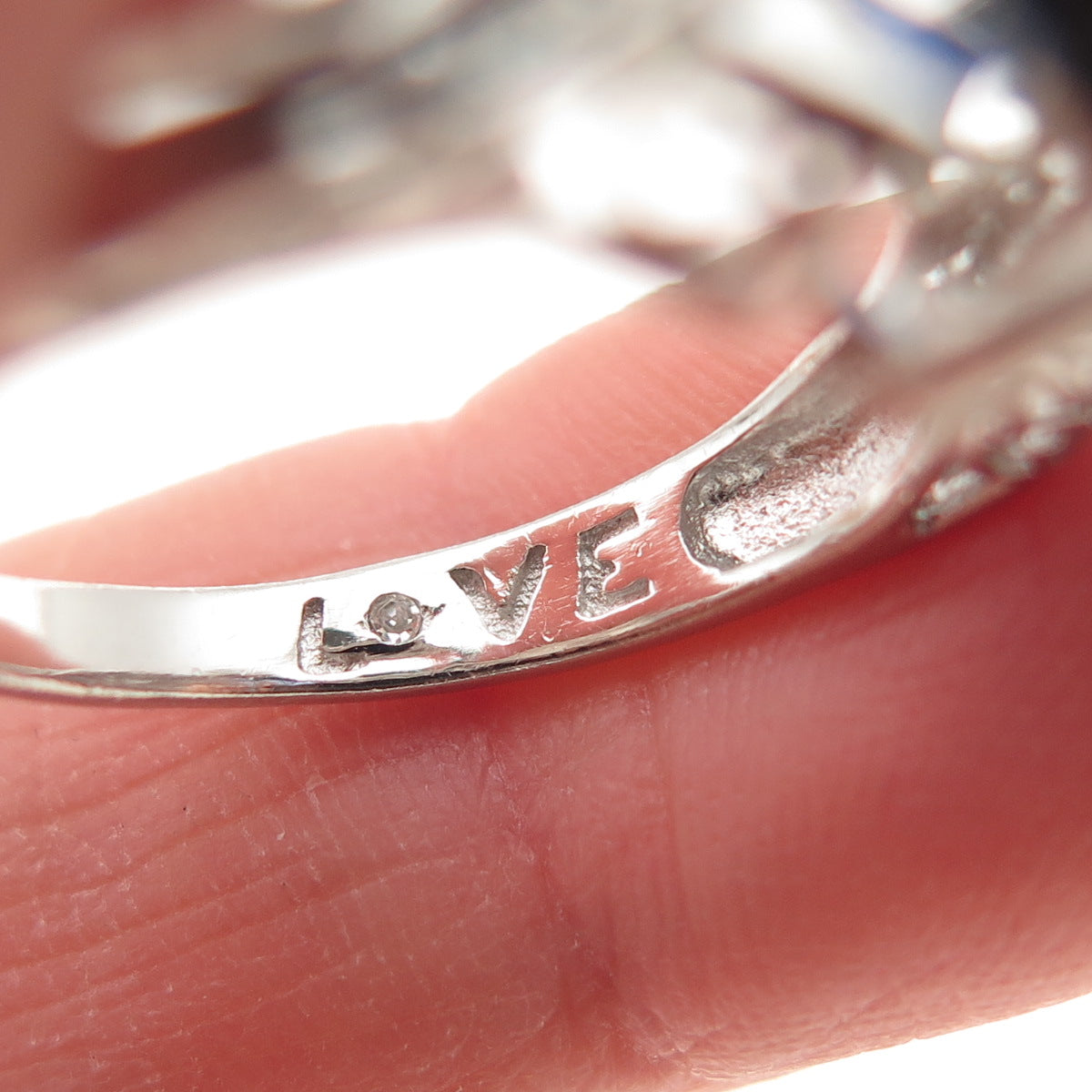 925 Sterling Real Round-Cut Diamond & Triangle-Cut Tanzanite Love Ring Size 6.75