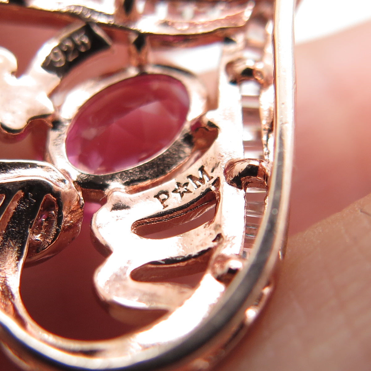 925 Sterling Rose Gold Plated Real Pink & White Topaz Mom Heart Charm Pendant