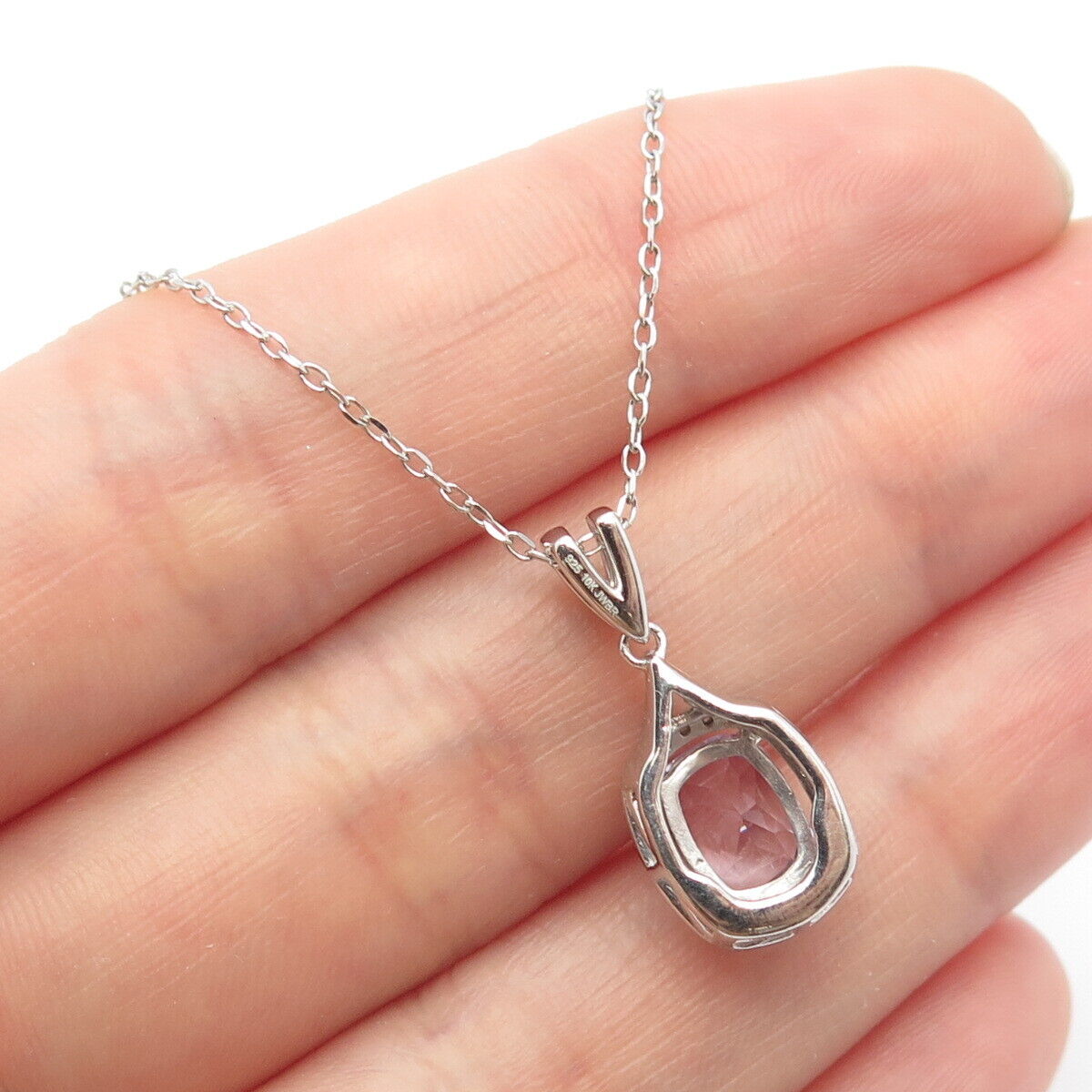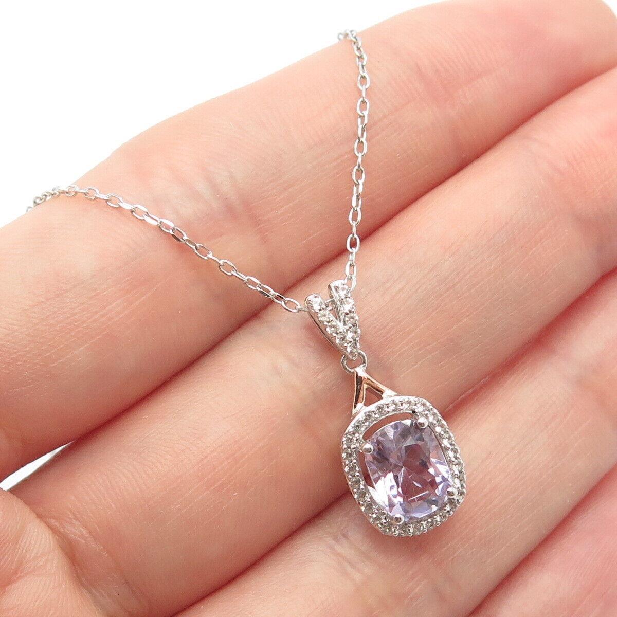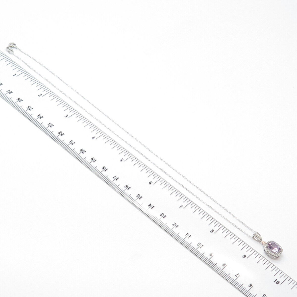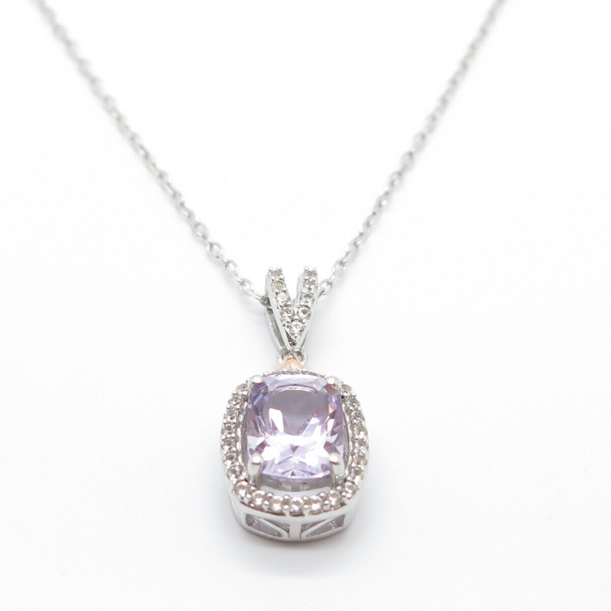 925 Sterling Silver / 10K Gold Italy Real Diamond & Amethyst Chain Necklace 18"