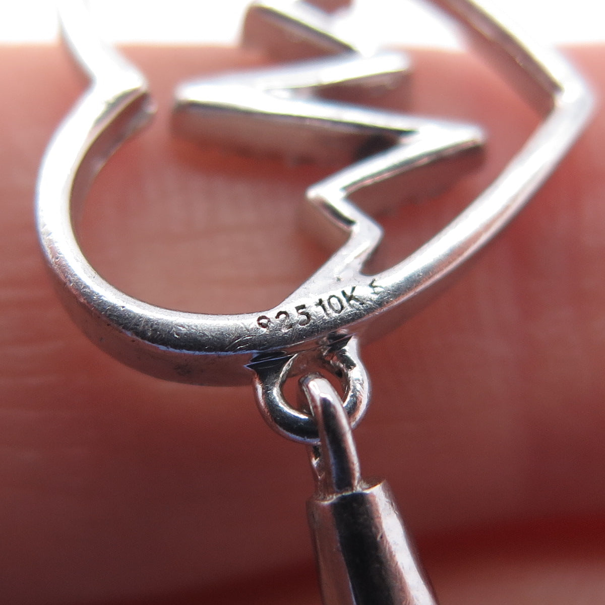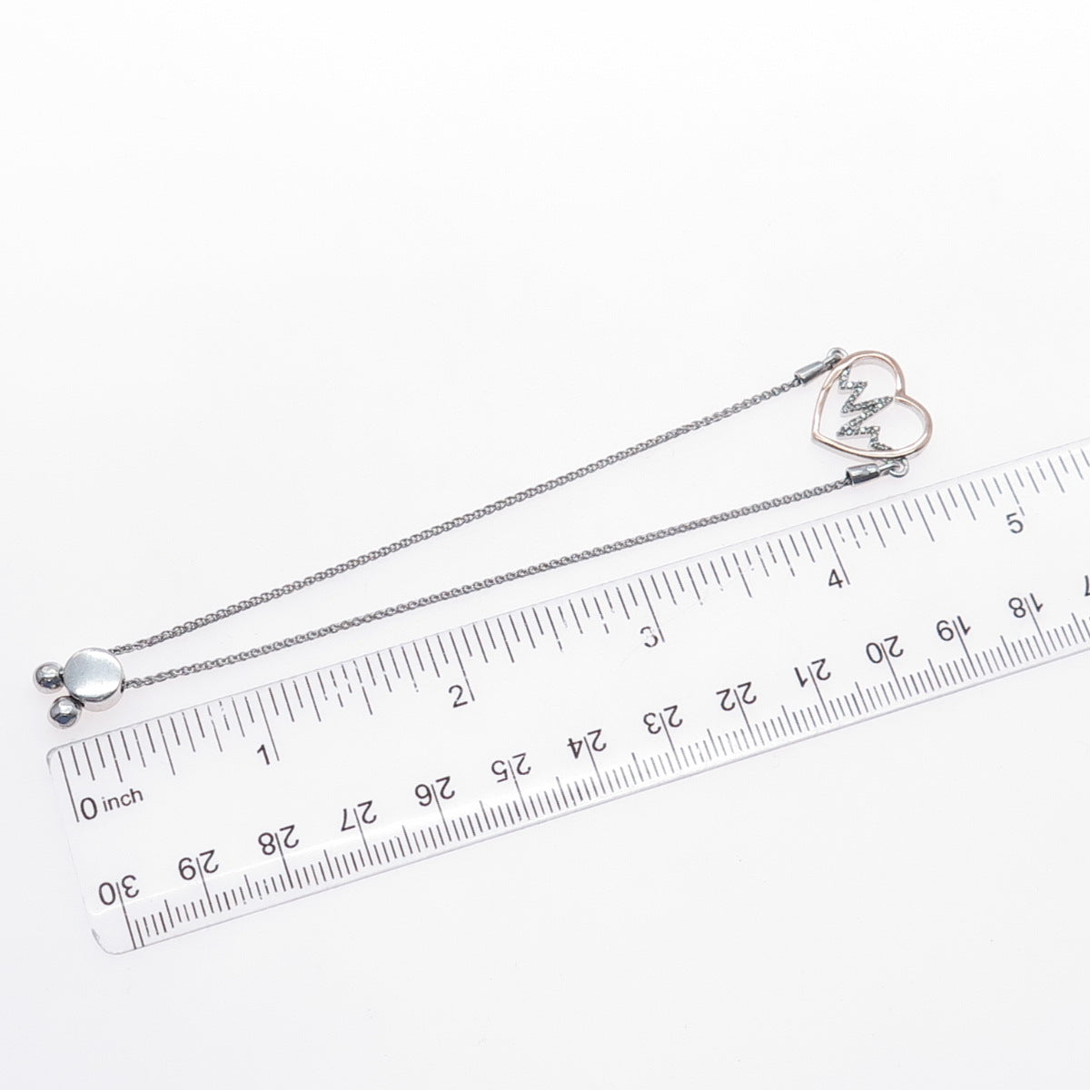925 Sterling Silver 10K Gold Real Diamond Heartbeat Adjustable Bracelet 6-8.75"