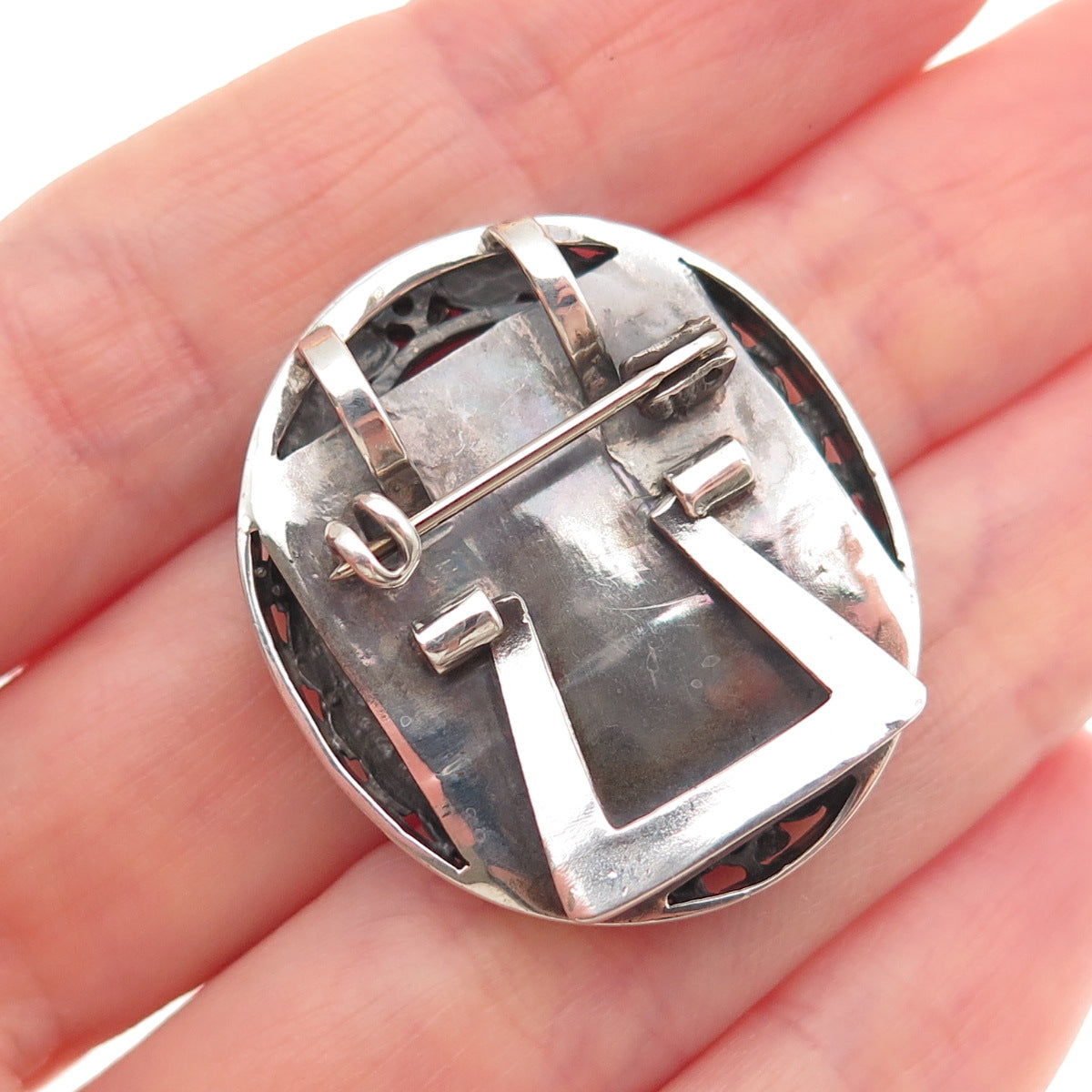 925 Sterling Silver 10K Gold Vintage Real Diamond Picture Frame Brooch / Pendant