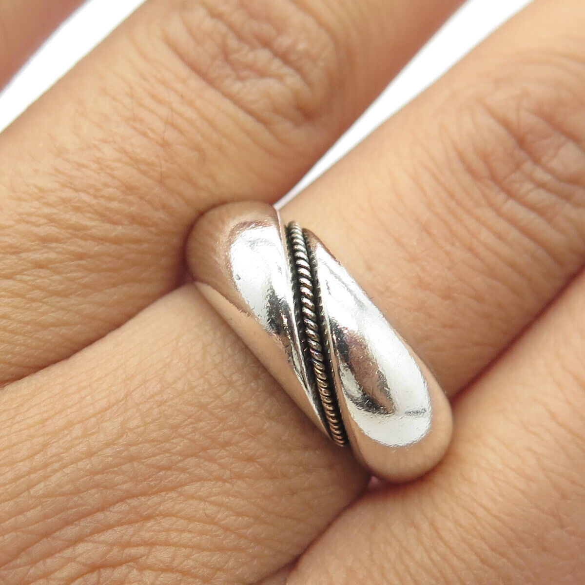 925 Sterling Silver / 10K Gold Vintage Twisted Accent Ring Size 8