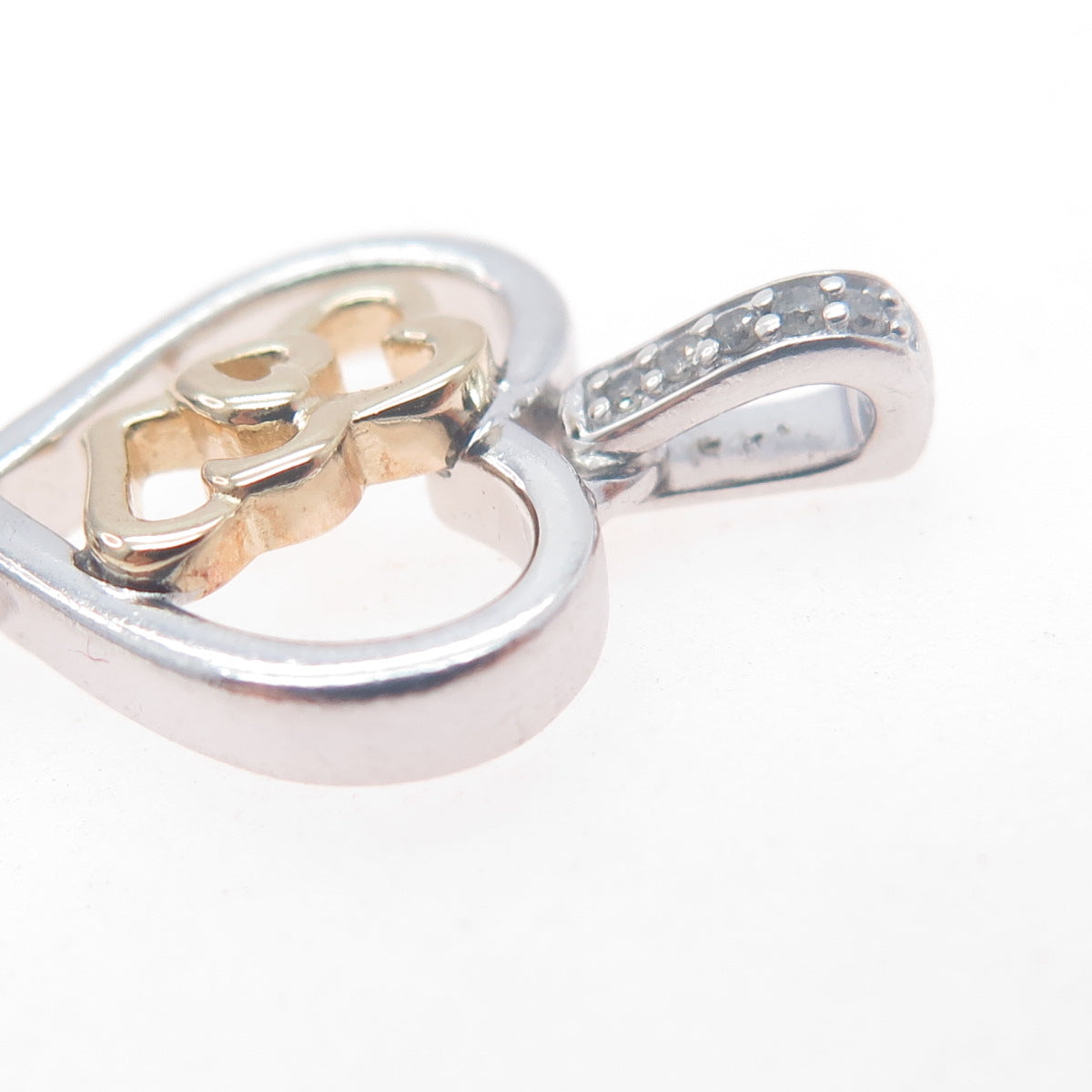 925 Sterling Silver 14K Gold Real Diamond Couple Heart Key Charm Pendant