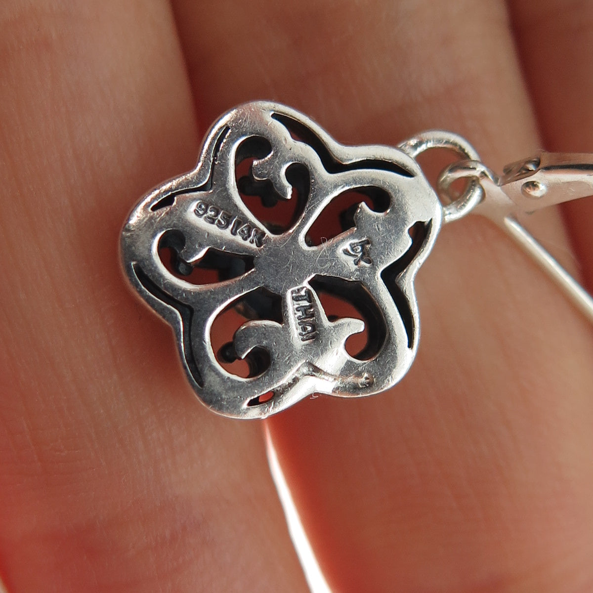 925 Sterling Silver 14K Gold Real Round-Cut Diamond Flower Dangle Earrings
