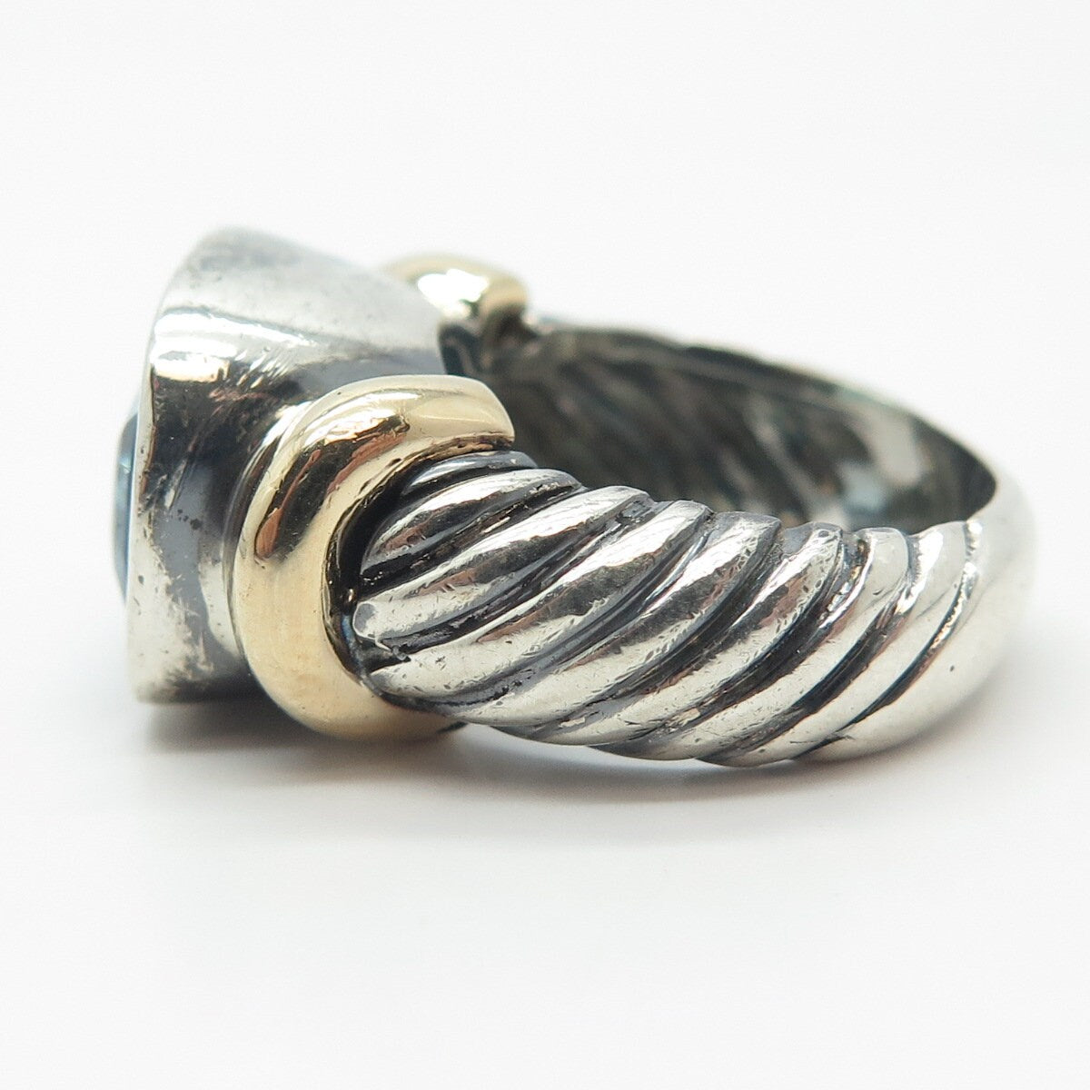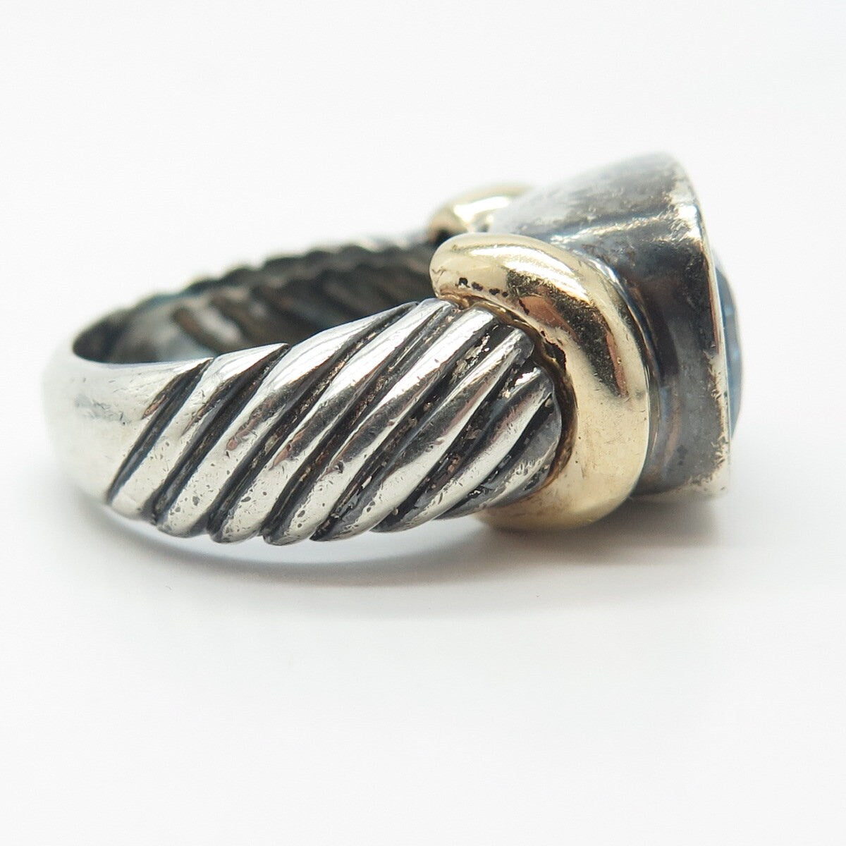 925 Sterling Silver / 14K Gold Vintage Real Blue Topaz Gemstone Ring Size 5.75