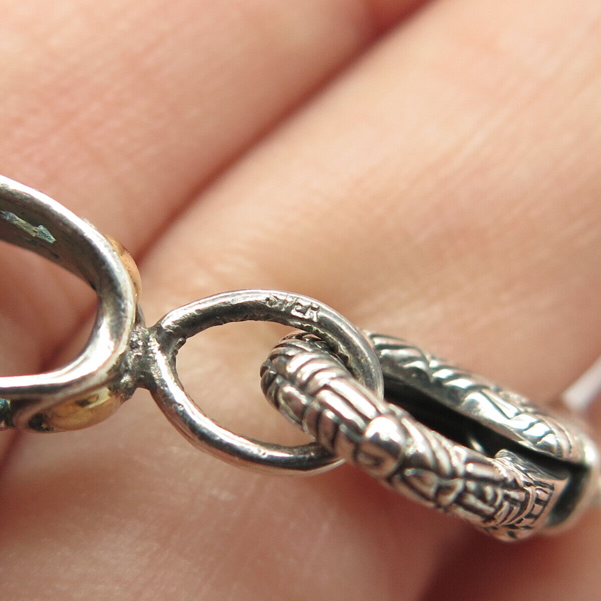 925 Sterling Silver 14K Gold Vintage Real Pearl & Black Onyx Chain Necklace 16"