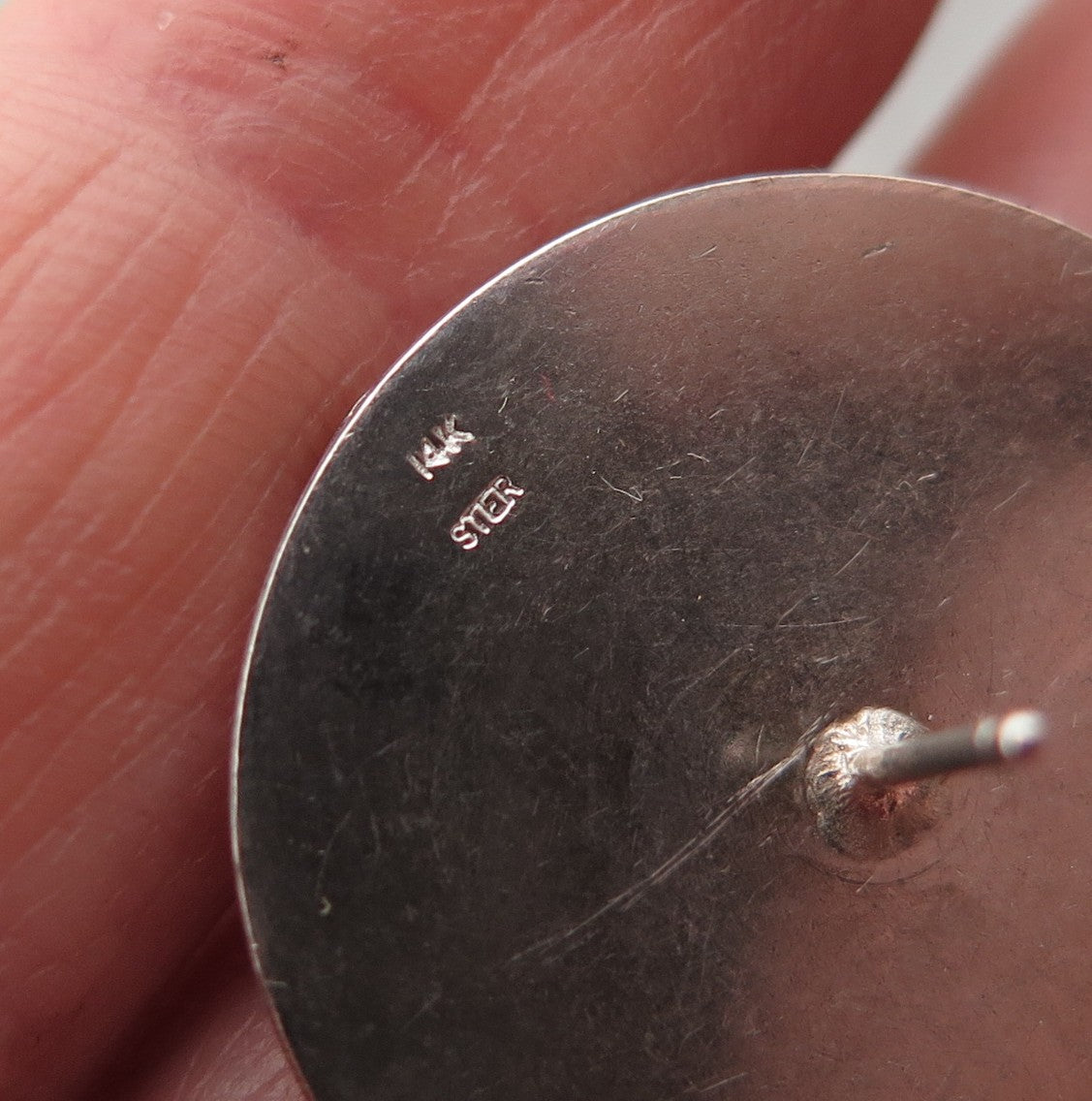 925 Sterling Silver 14K Rose Gold Vintage Modernist Disc Earrings