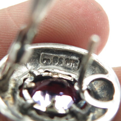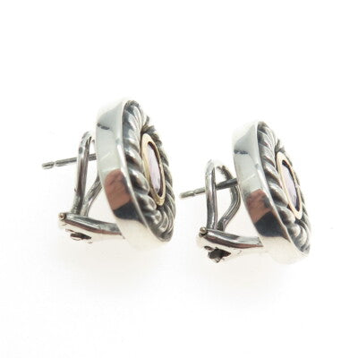 925 Sterling Silver & 14K Yellow Gold Vintage Real Amethyst Omega Back Earrings