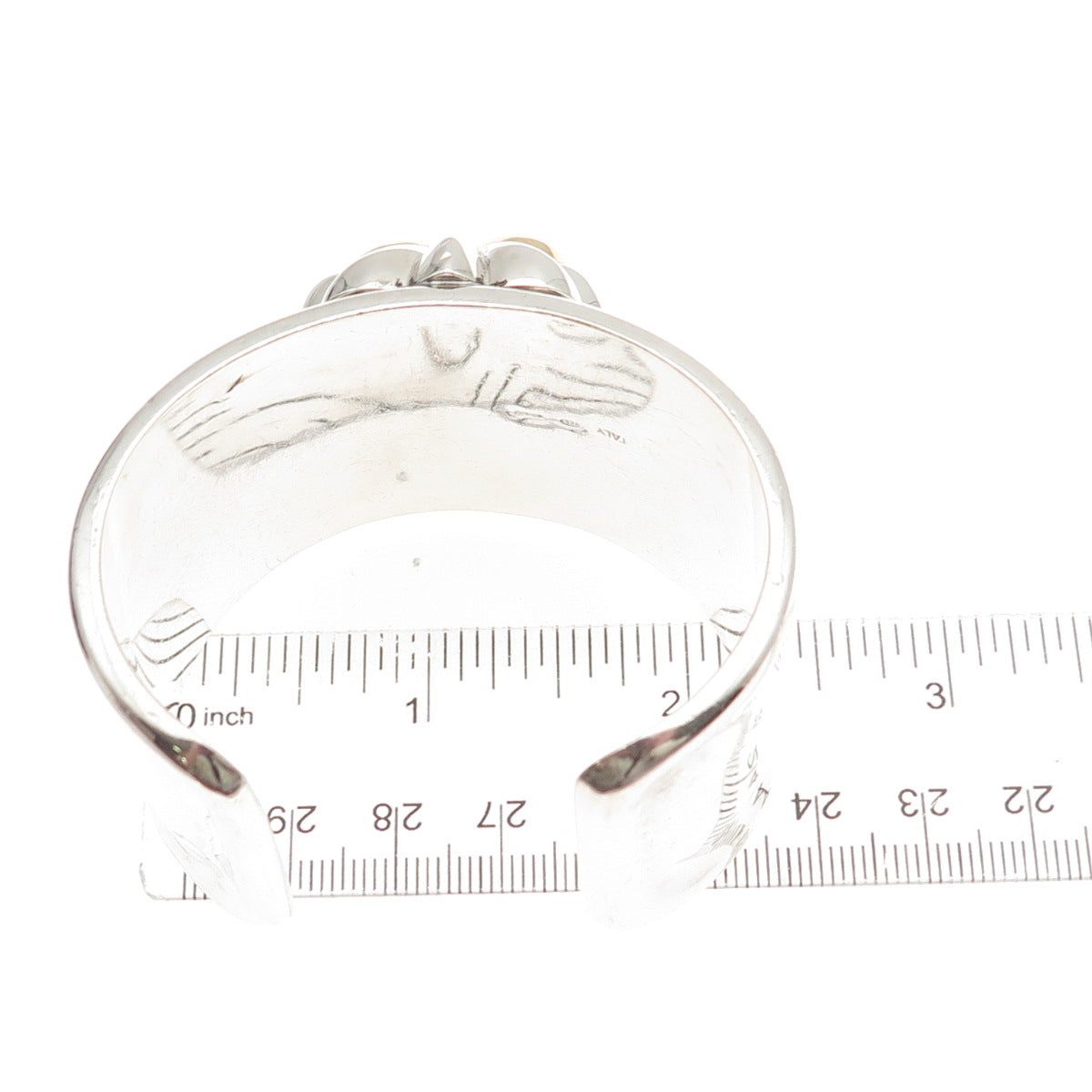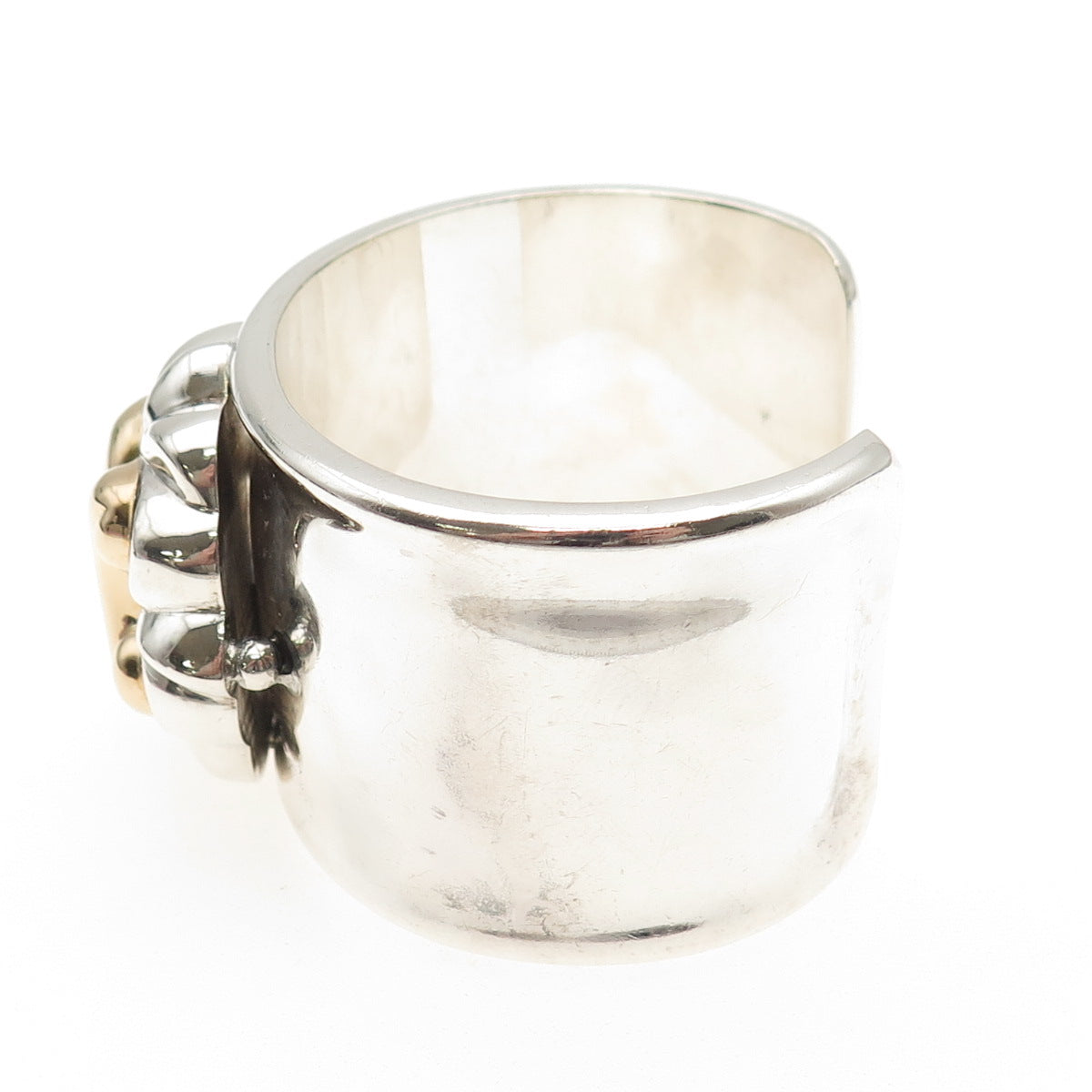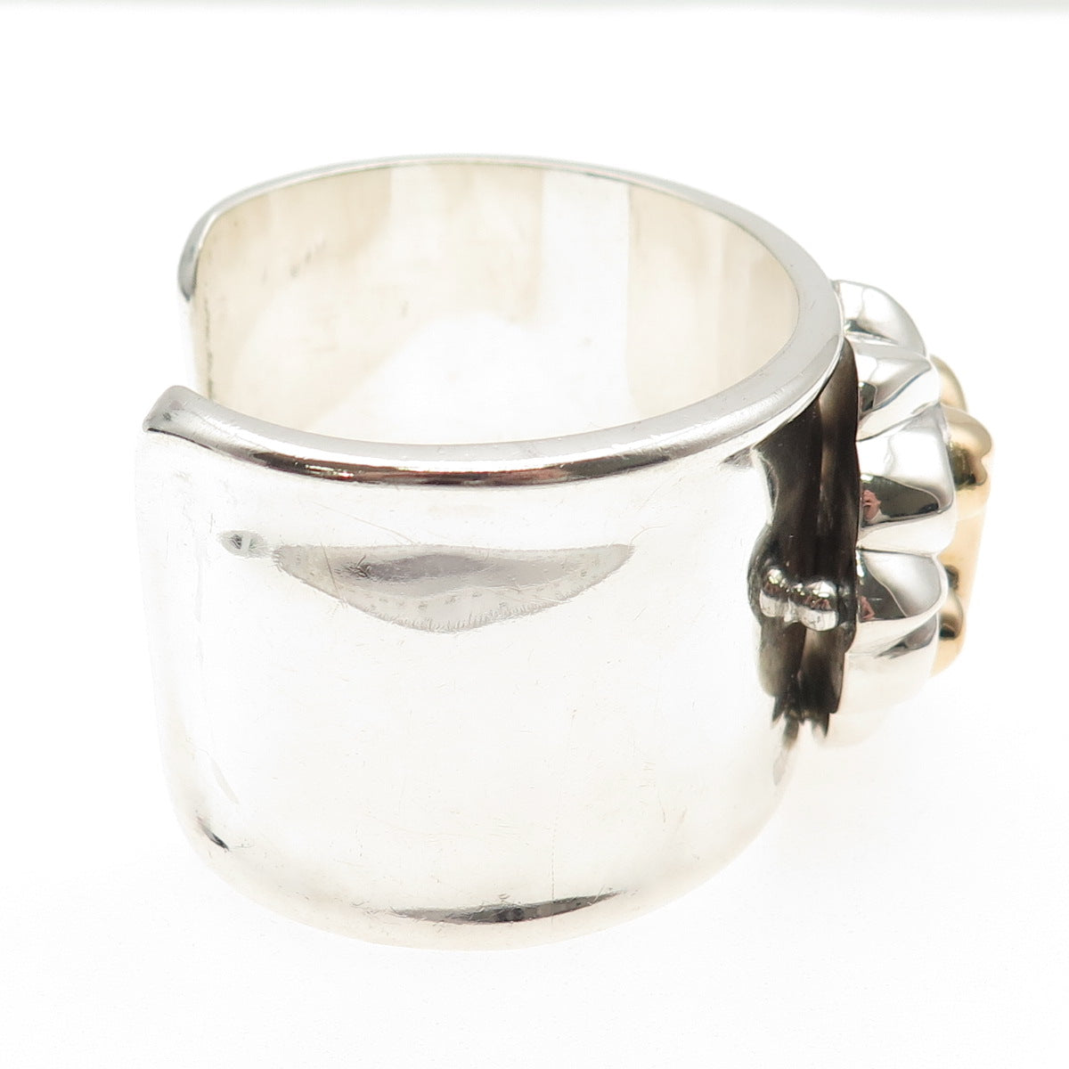 925 Sterling Silver 18K Gold Vintage Italy Floral Adjustable Bracelet 6.25"