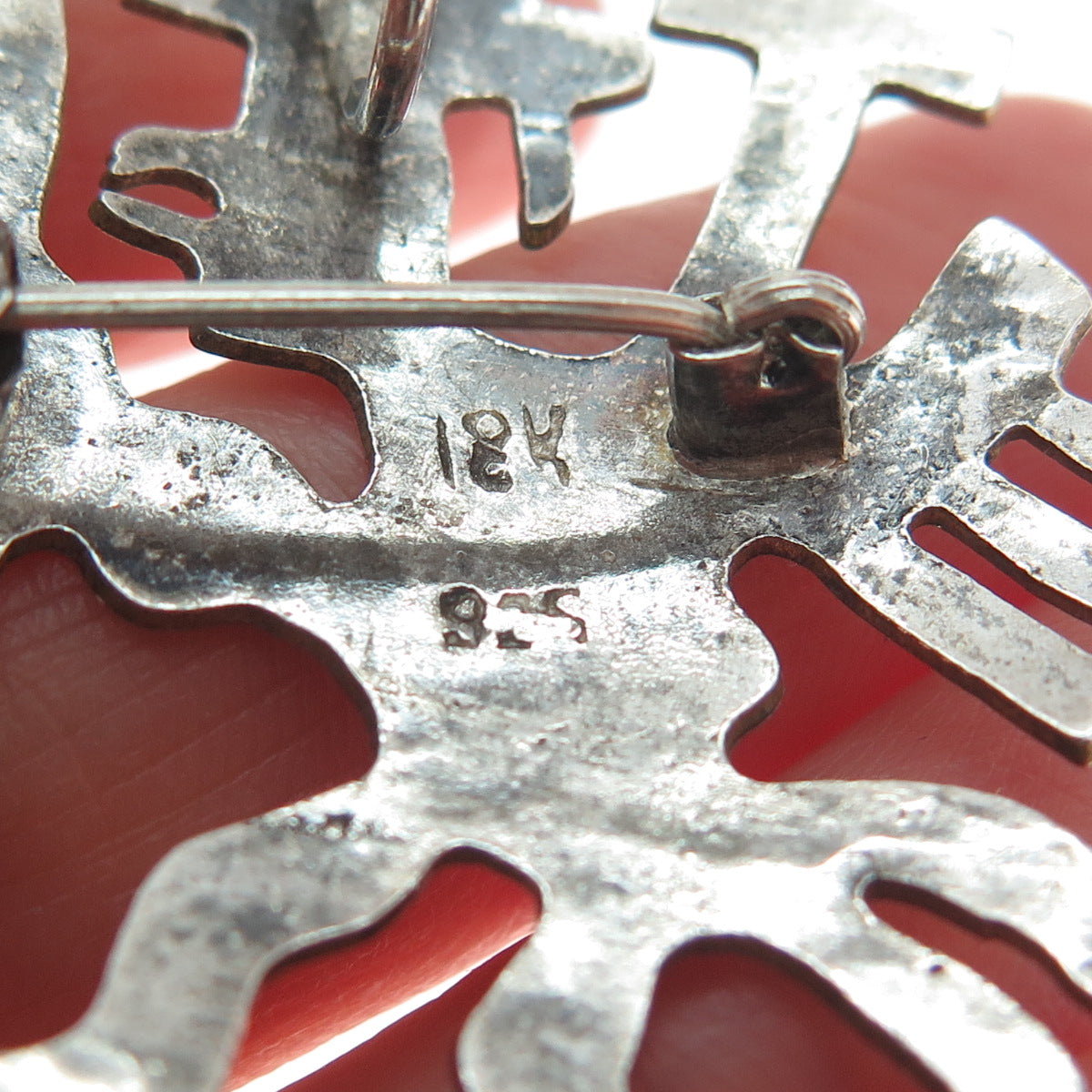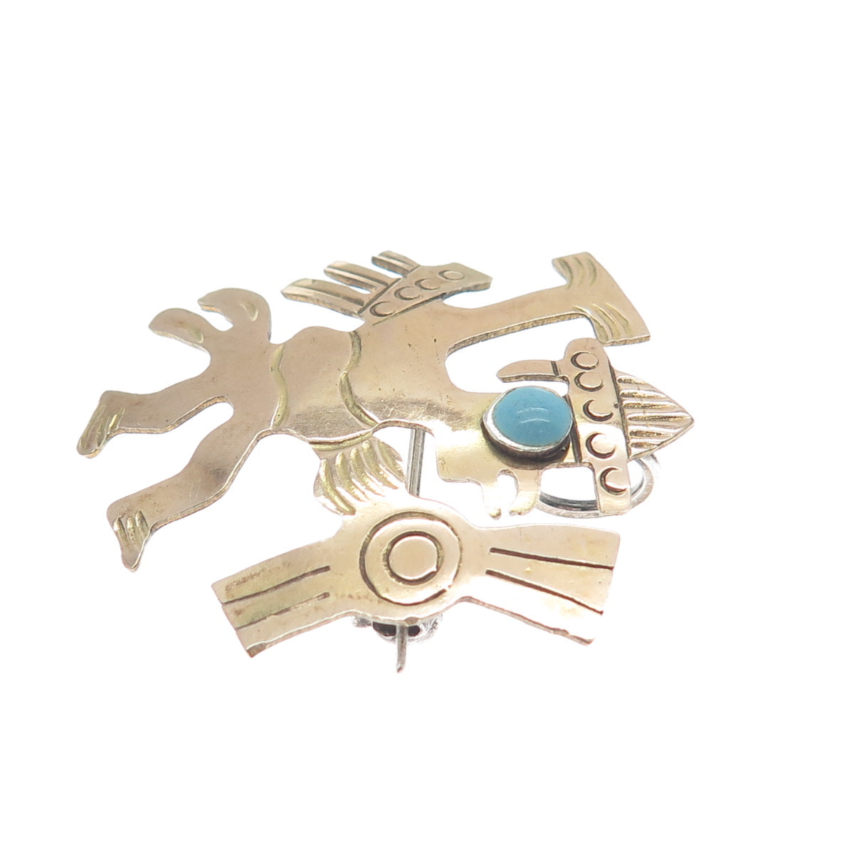 925 Sterling Silver & 18K Gold Vintage Real Turquoise Mayan Warrior Pin Pendant