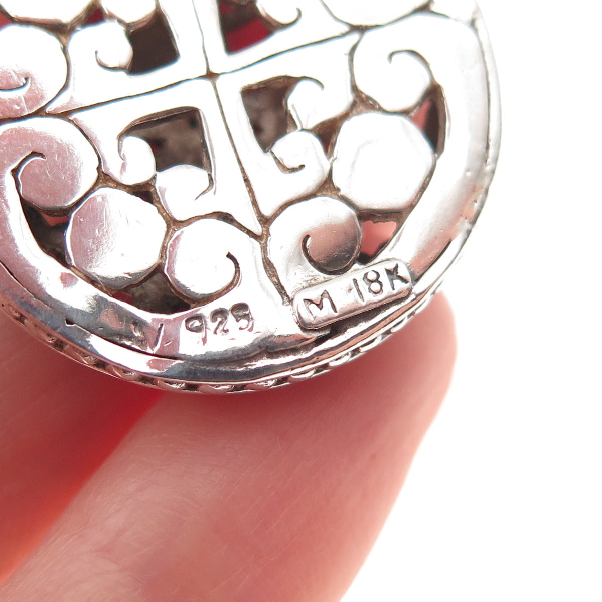 925 Sterling Silver 18K Rose Gold Vintage Heart Floral Ornate Charm Pendant