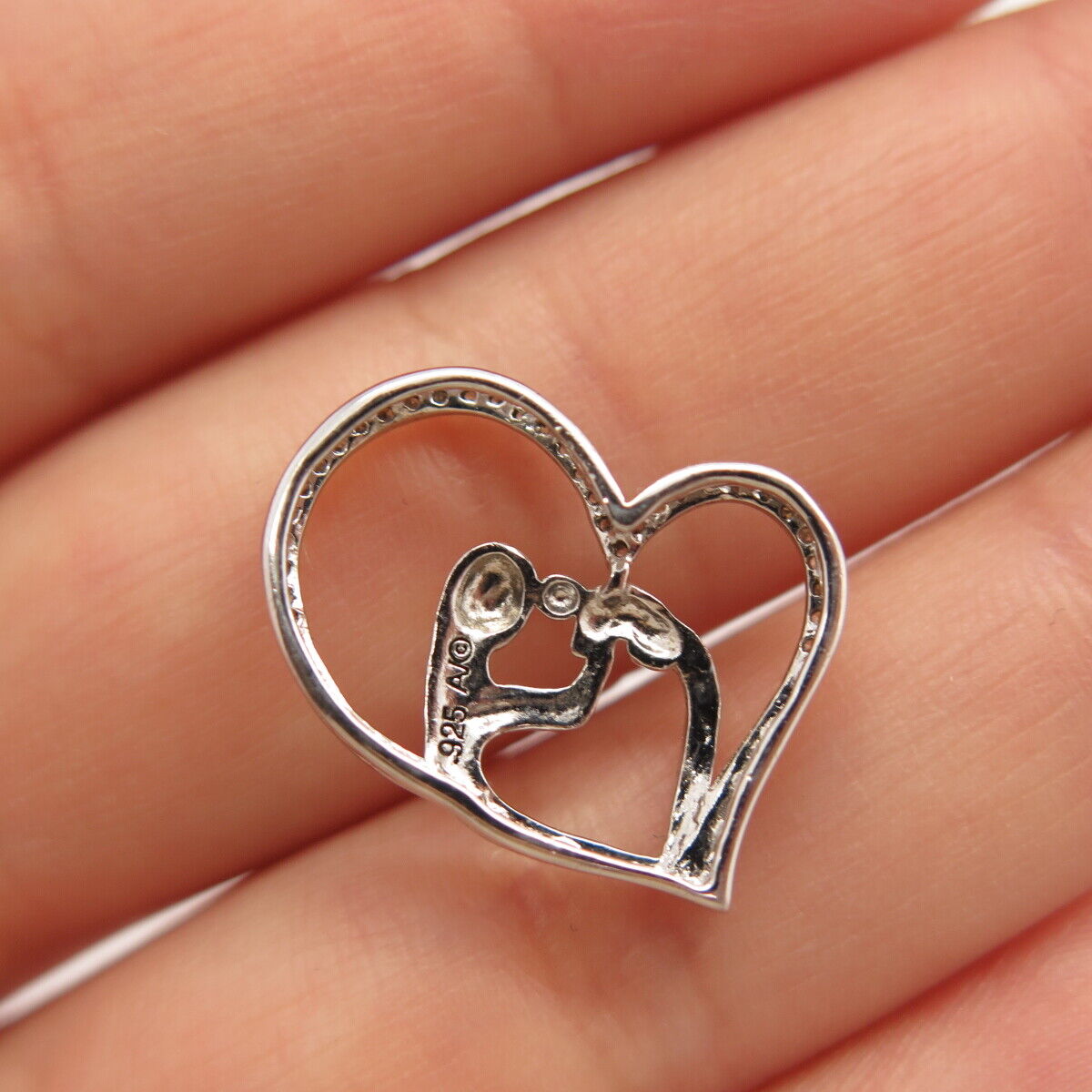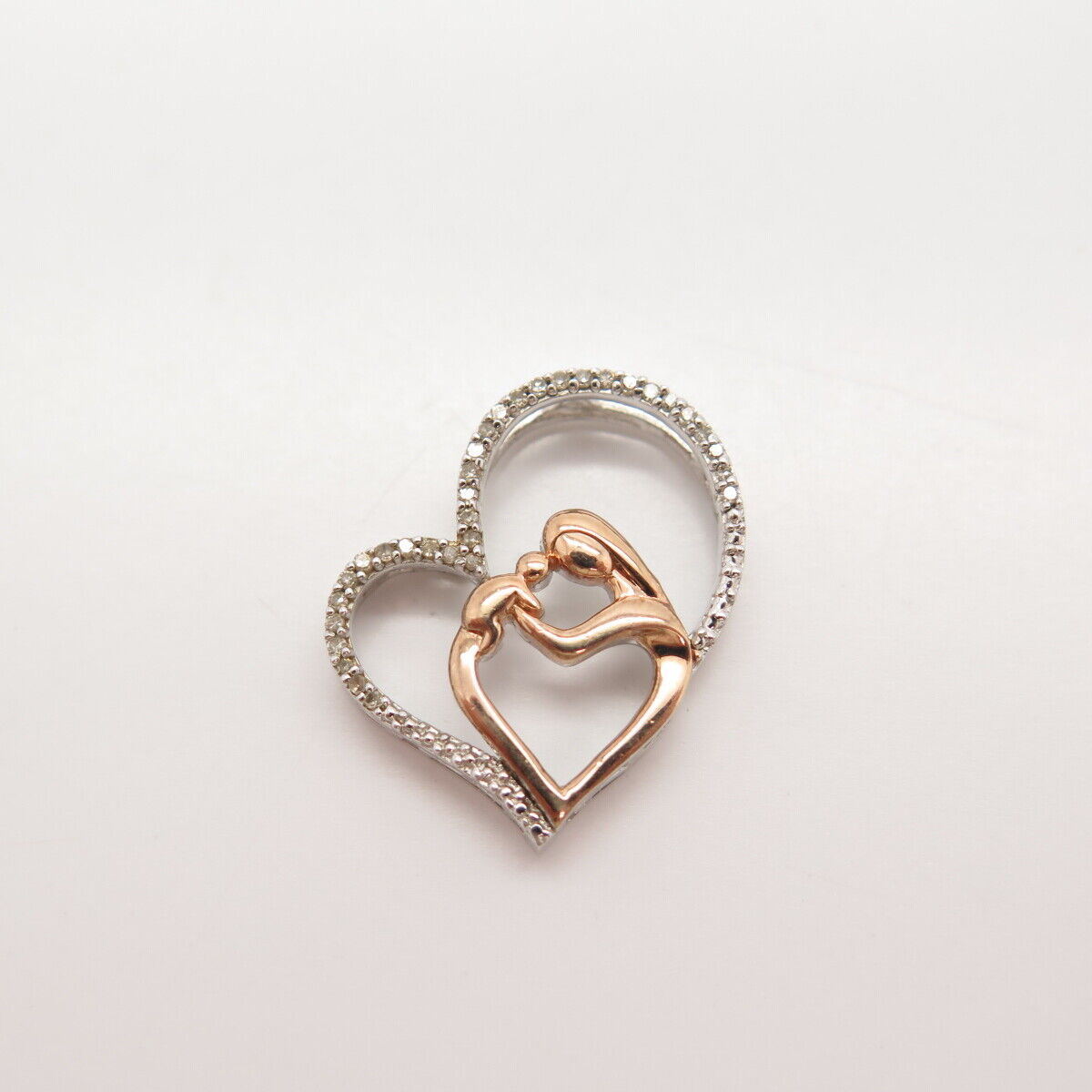 925 Sterling Silver 2-Tone Alwand Vahan Real Diamond Mother & Child Pendant