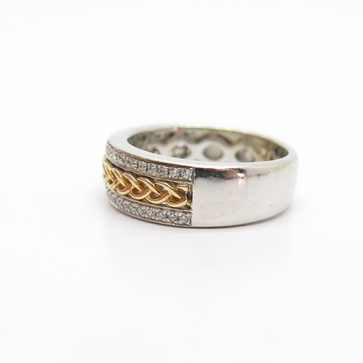 925 Sterling Silver 2-Tone C Z Braided / Woven Band Ring Size 6 3/4