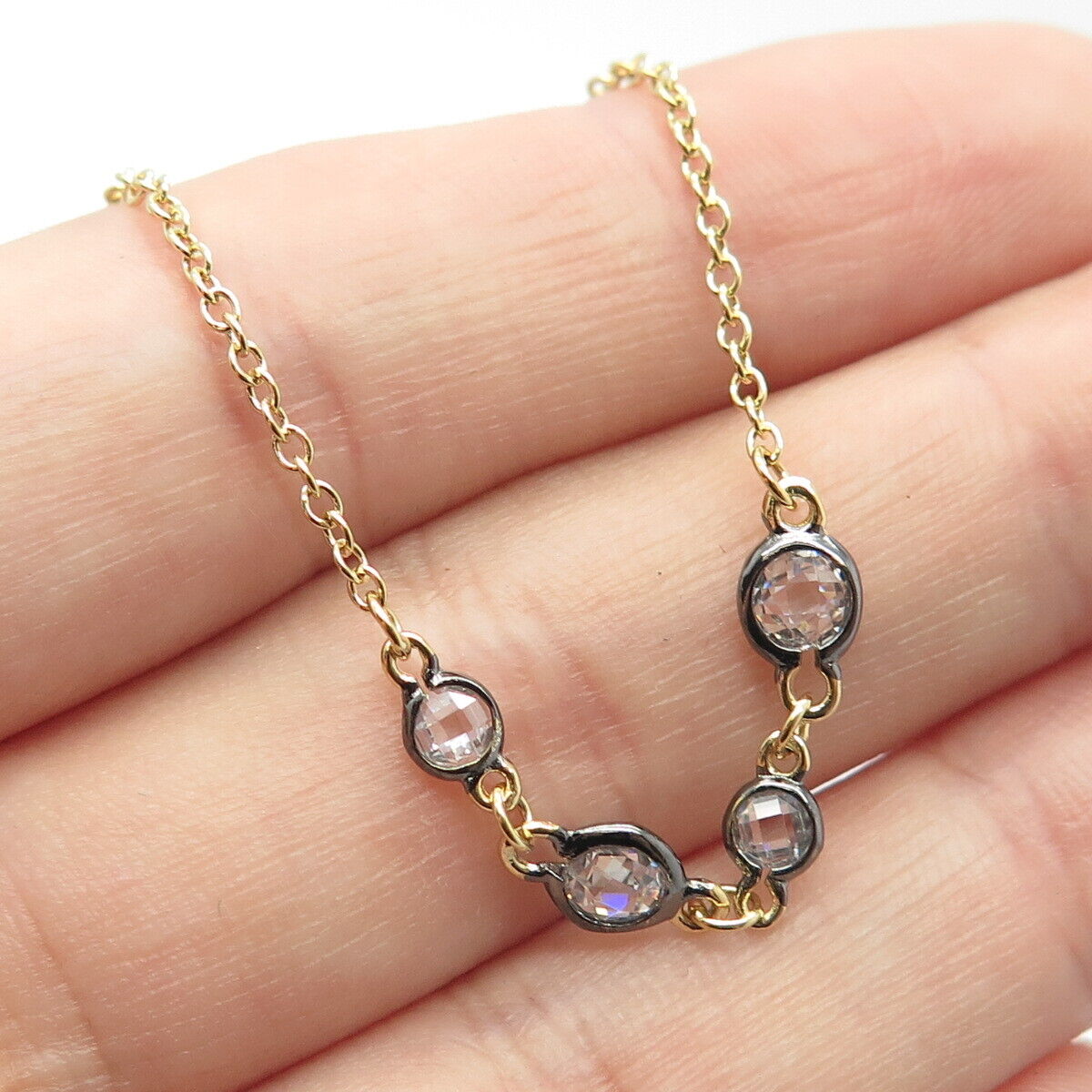 925 Sterling Silver 2-Tone C Z Rolo Chain Necklace 60"
