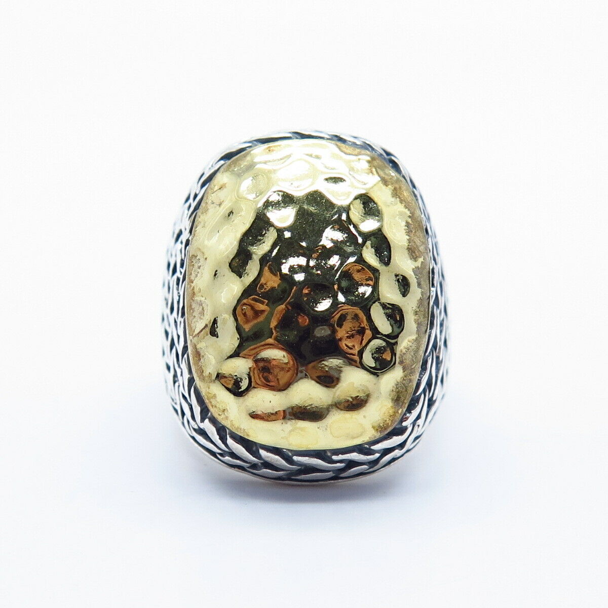 925 Sterling Silver 2-Tone Hammered Finish Ring Size 6 3/4