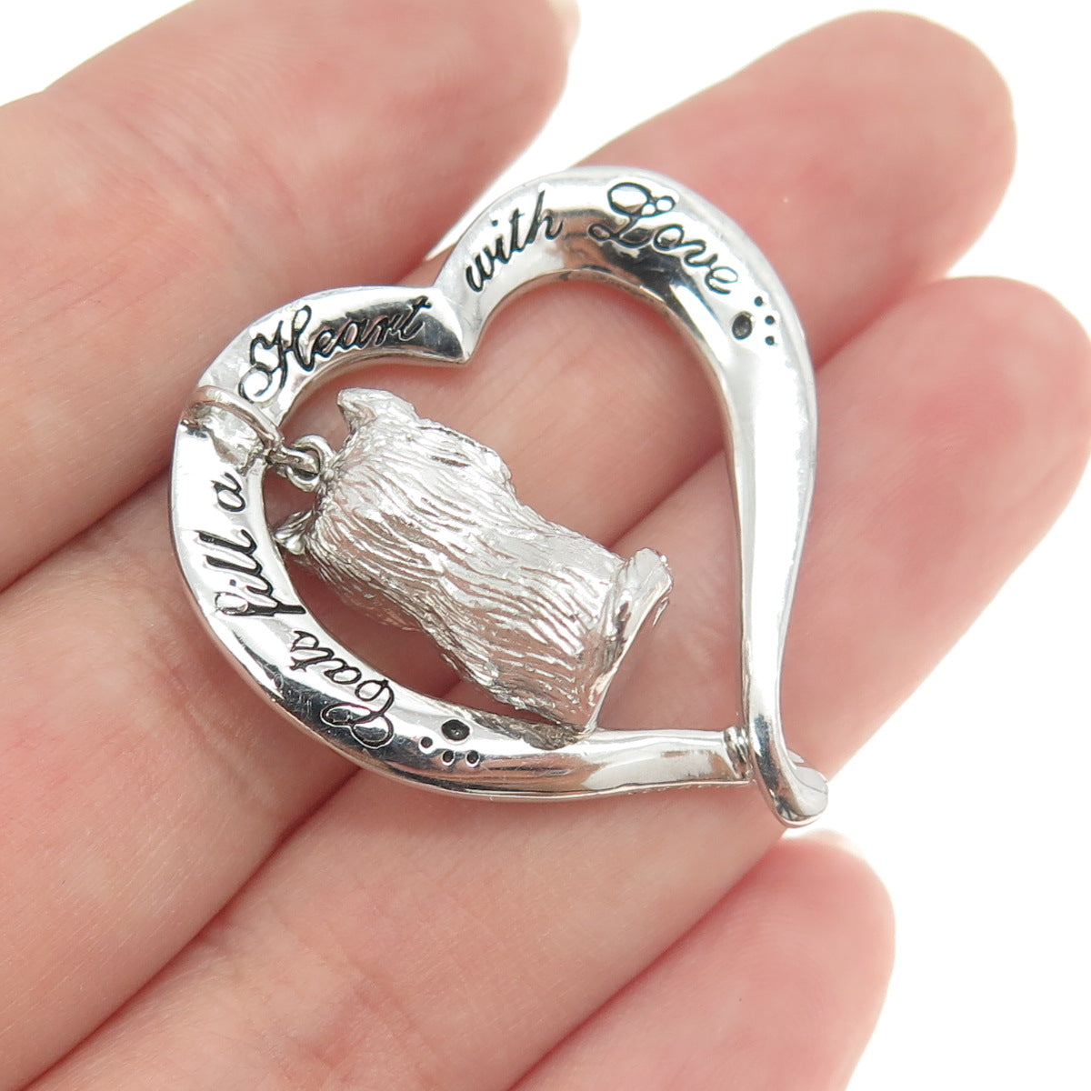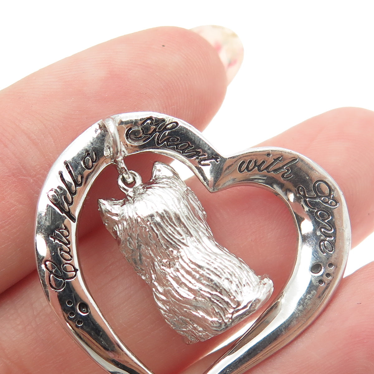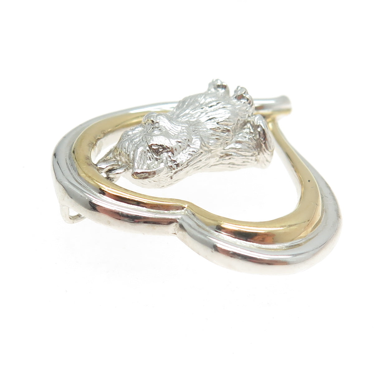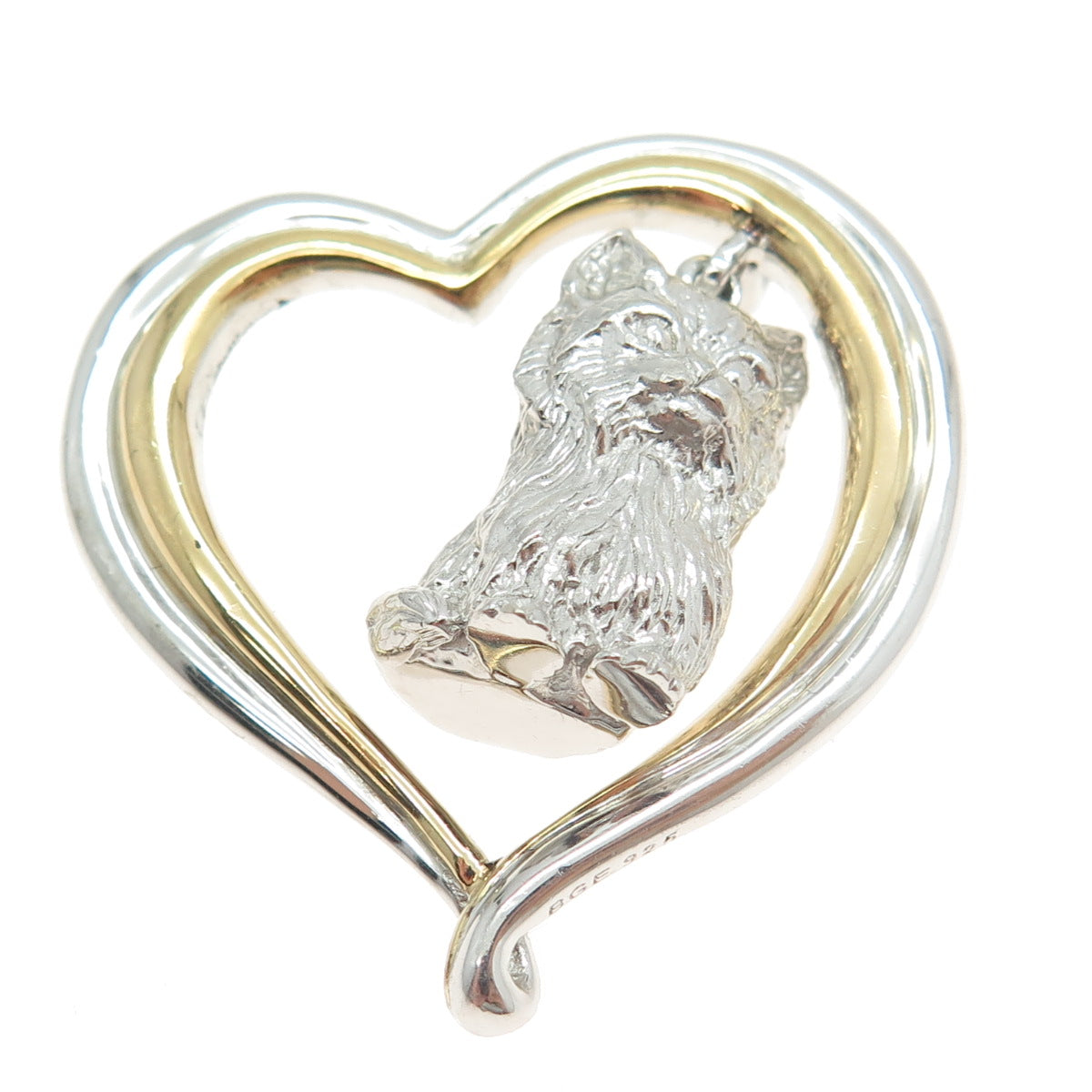 925 Sterling Silver 2-Tone Kitty Open Heart Slide Pendant
