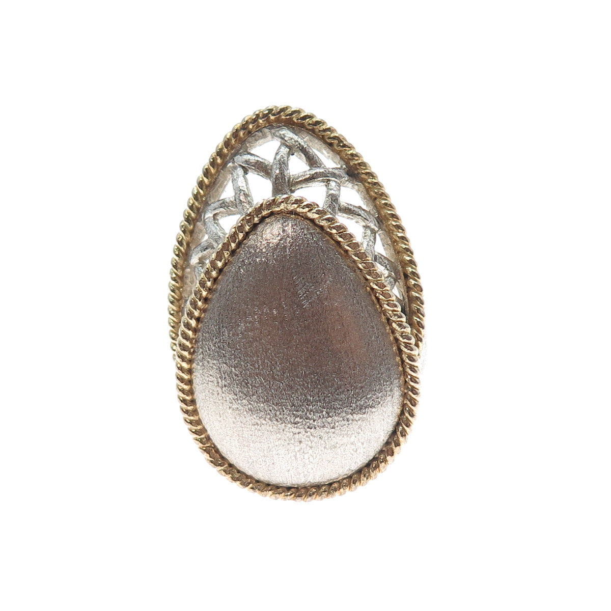 925 Sterling Silver 2-Tone Modernist Brushed Ring Size 8
