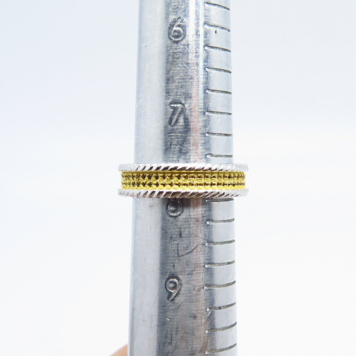 925 Sterling Silver 2-Tone Pave C Z Band Ring Size 7.75