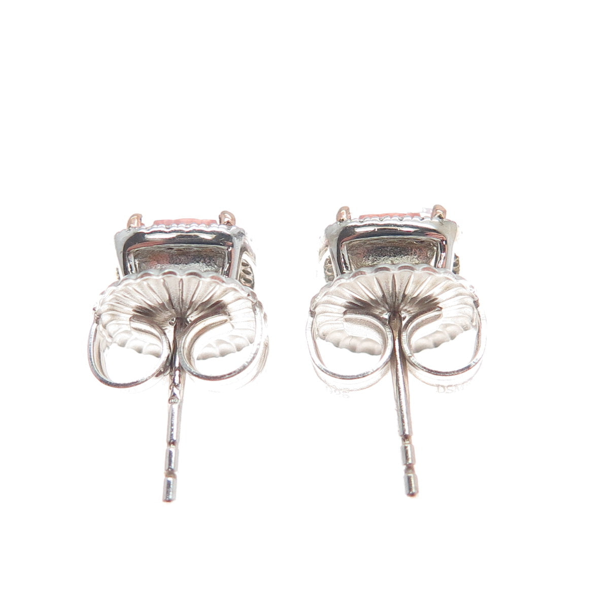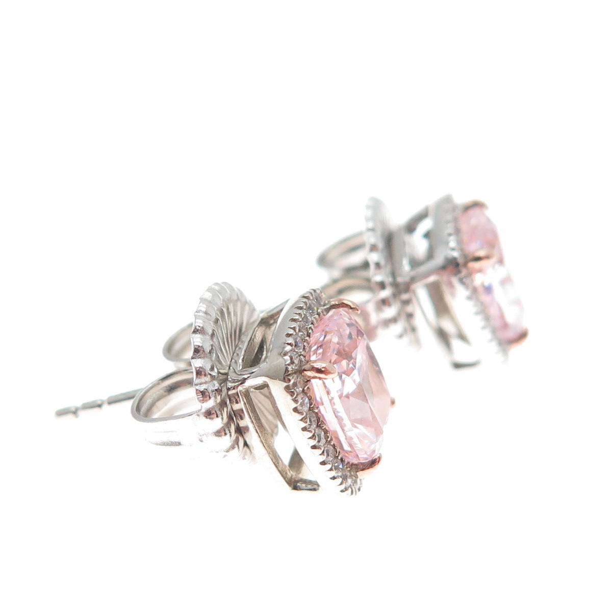 925 Sterling Silver 2-Tone Radiant-Cut Pink & Round-Cut White C Z Stud Earrings