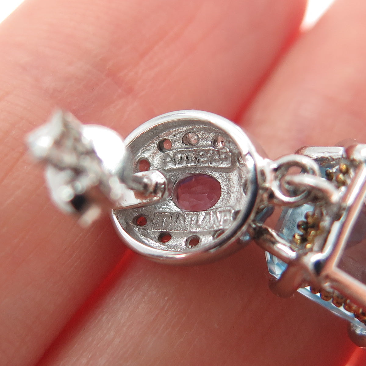 925 Sterling Silver 2-Tone Real Blue & White Topaz Amethyst Dangle Earrings
