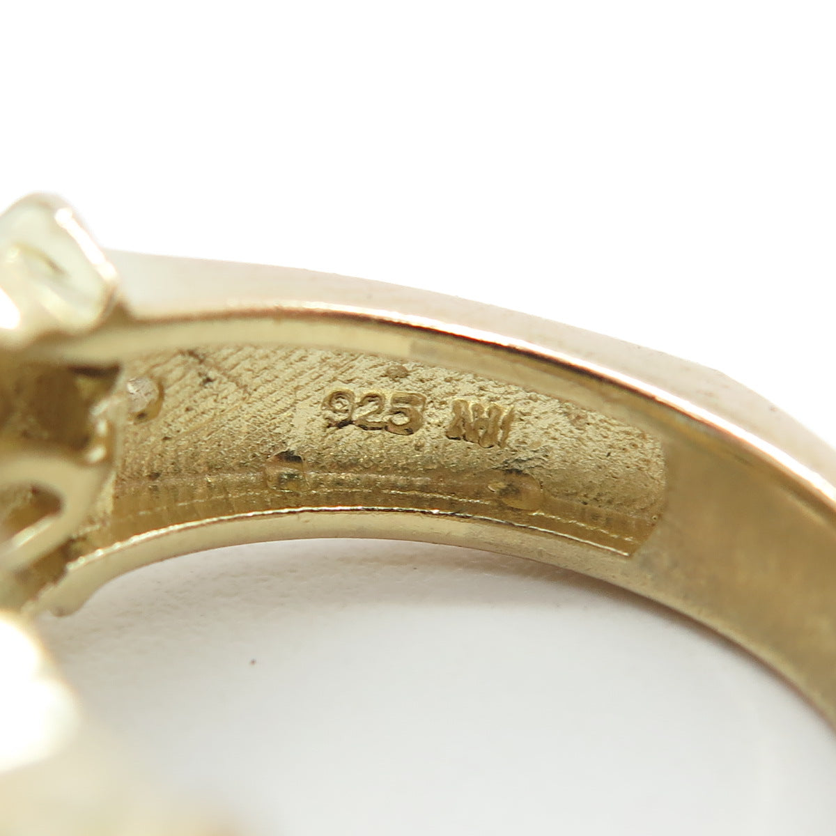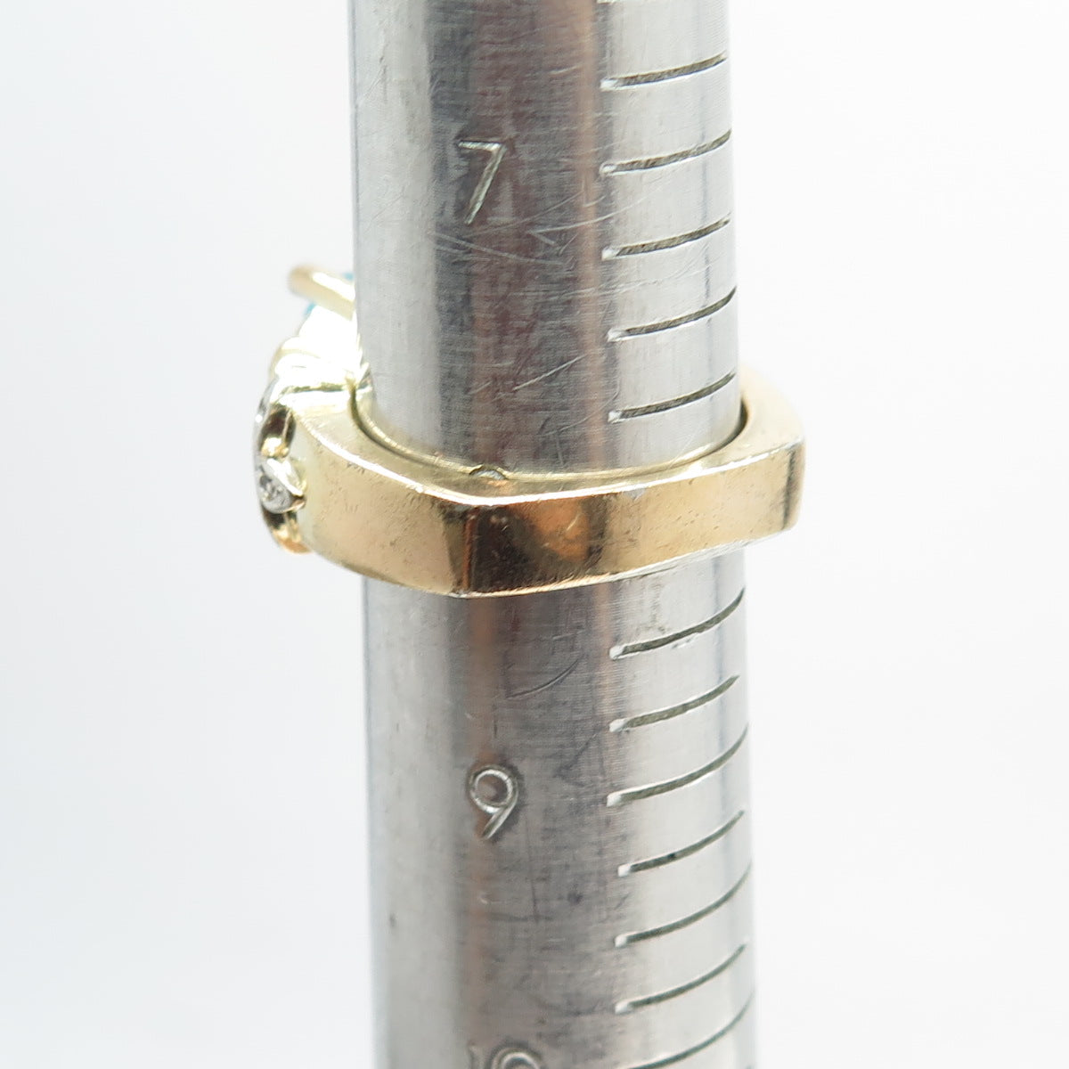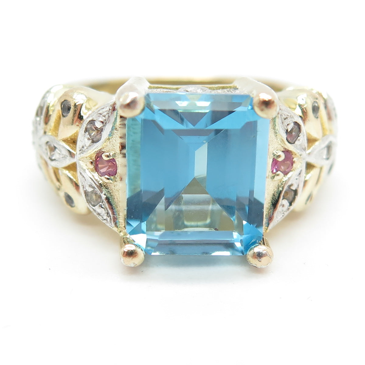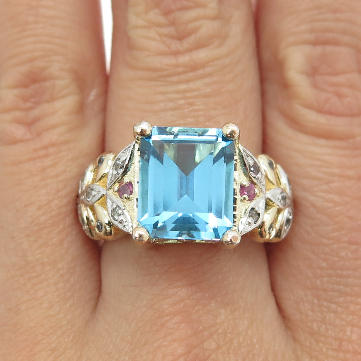 925 Sterling Silver 2-Tone Real Blue & White Topaz Ruby Floral Ring Size 8.25