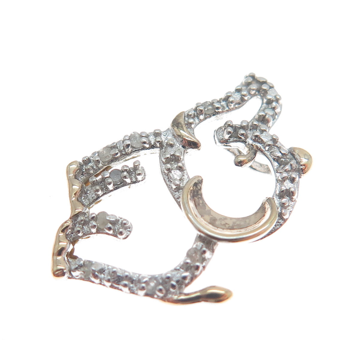 925 Sterling Silver 2-Tone Real Round-Cut Diamond Elephant Minimalist Pendant