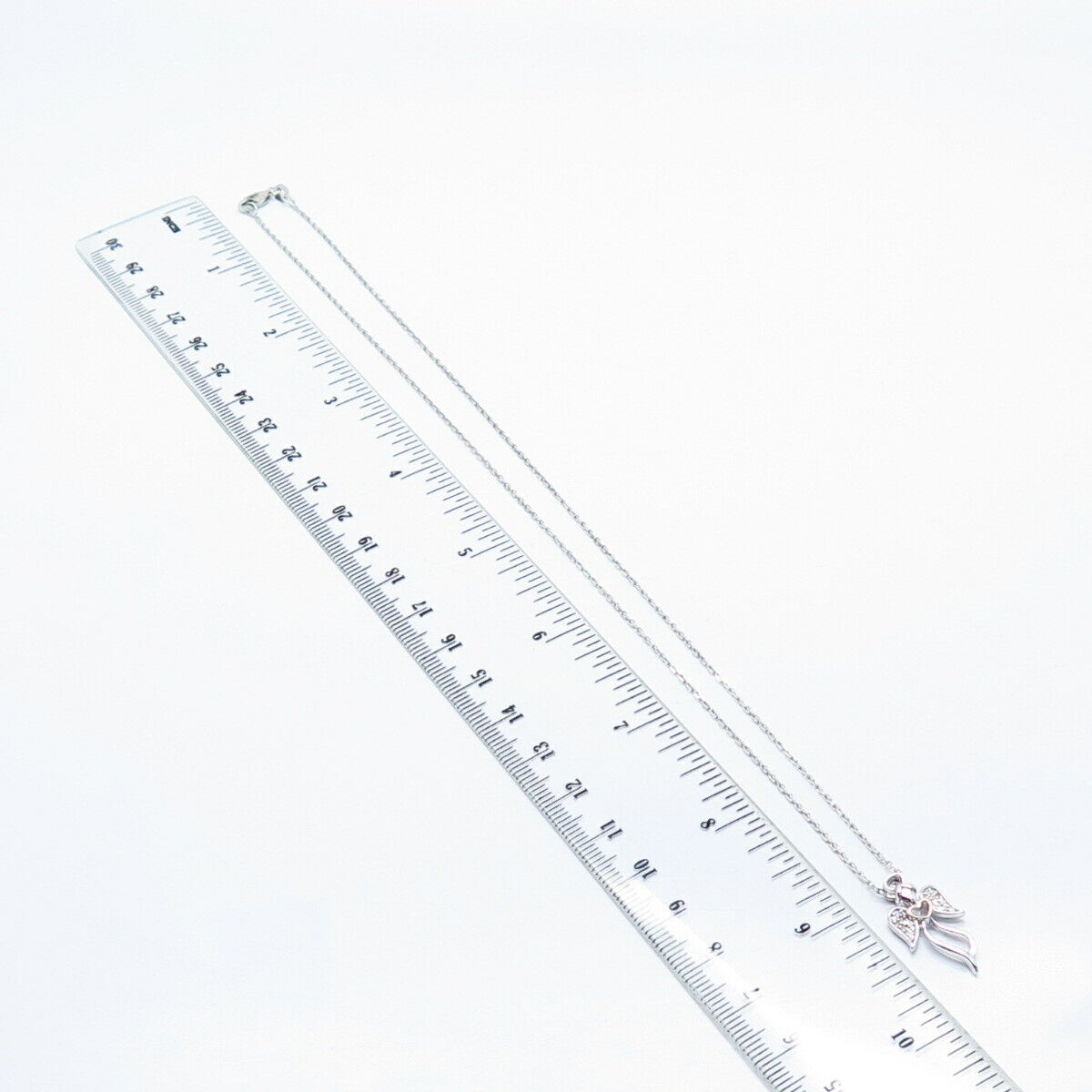 925 Sterling Silver 2-Tone Real White Diamond Angel Rolo Chain Necklace 18"