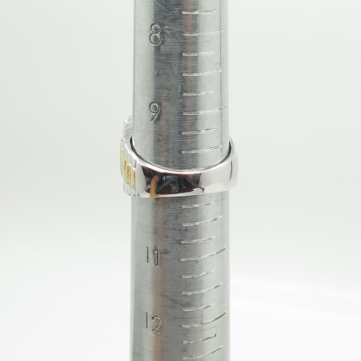925 Sterling Silver 2-Tone Real White Topaz Gemstone Ring Size 10.25