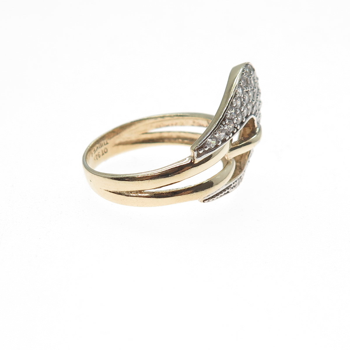 925 Sterling Silver 2-Tone Round-Cut C Z Buckle Ring Size 6.25