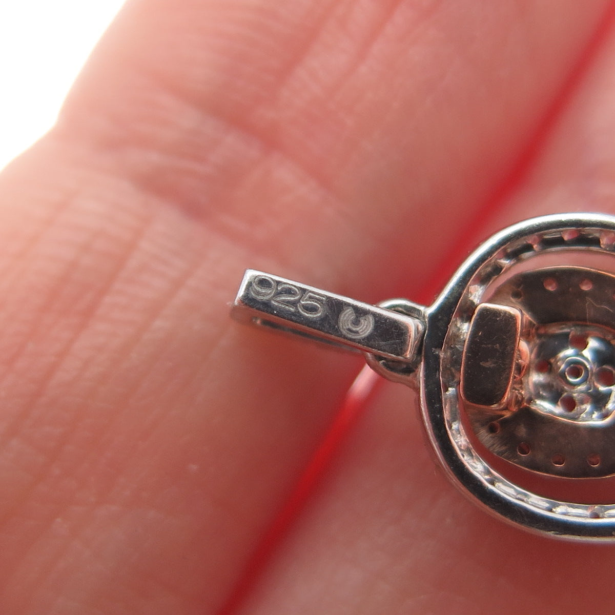 925 Sterling Silver 2-Tone Round-Cut C Z Cushion Minimalist Charm Pendant