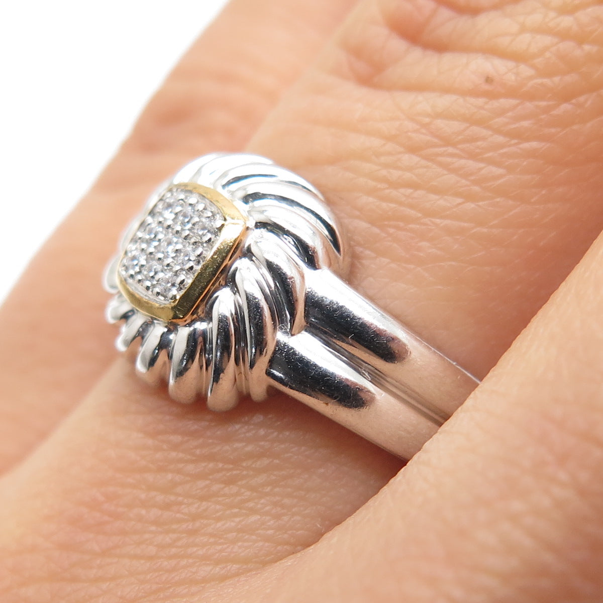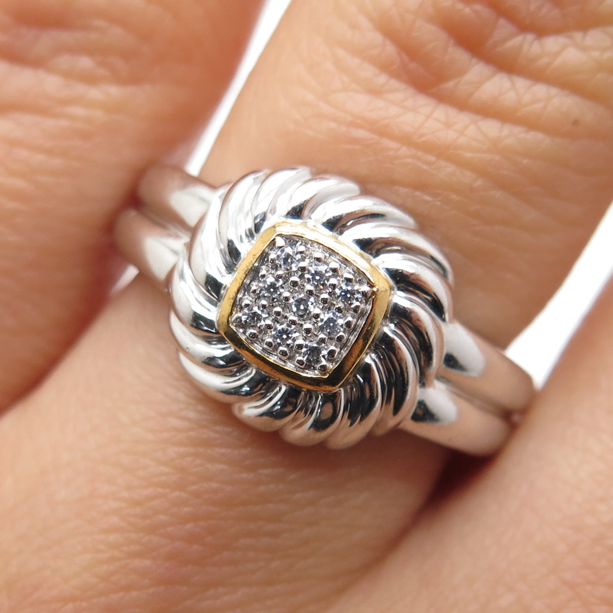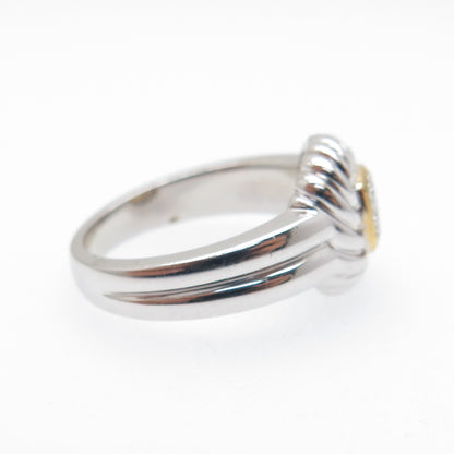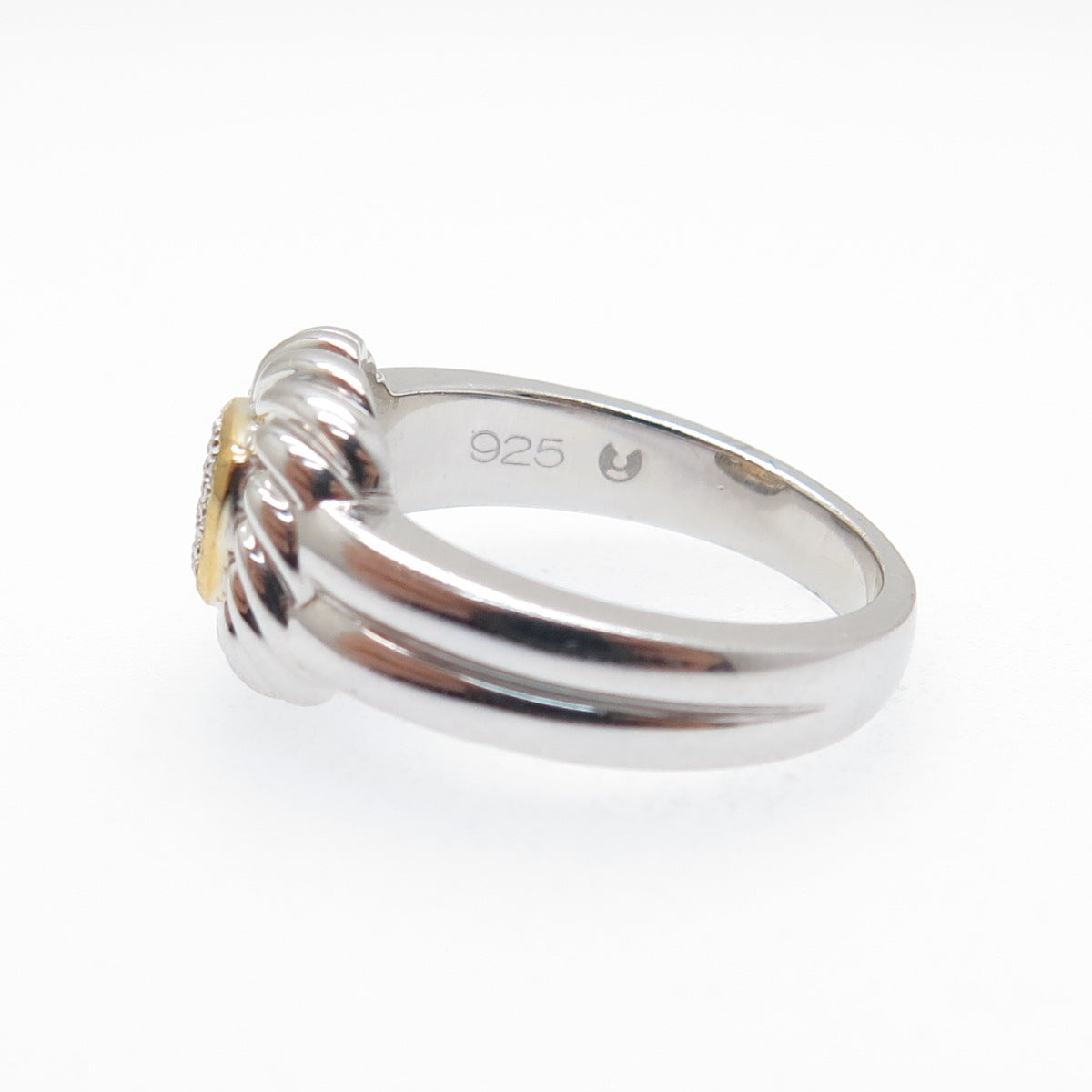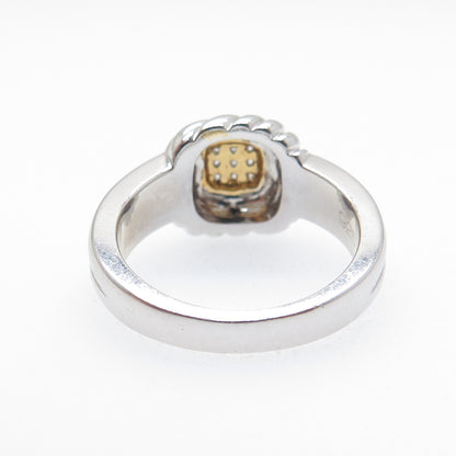 925 Sterling Silver 2-Tone Round-Cut C Z Ring Size 6.75