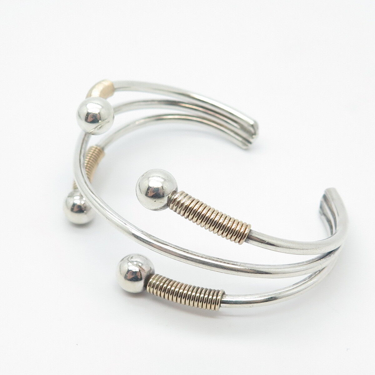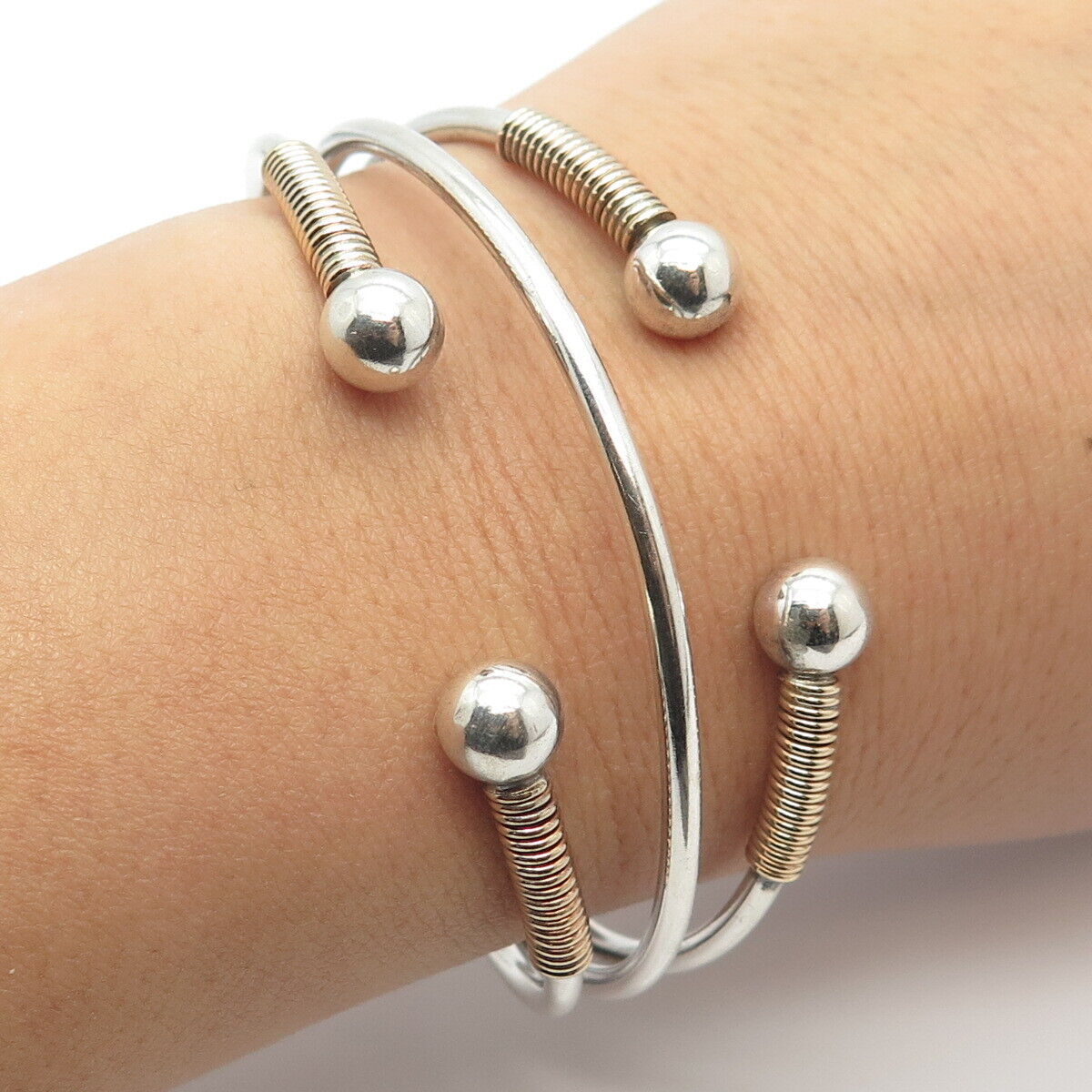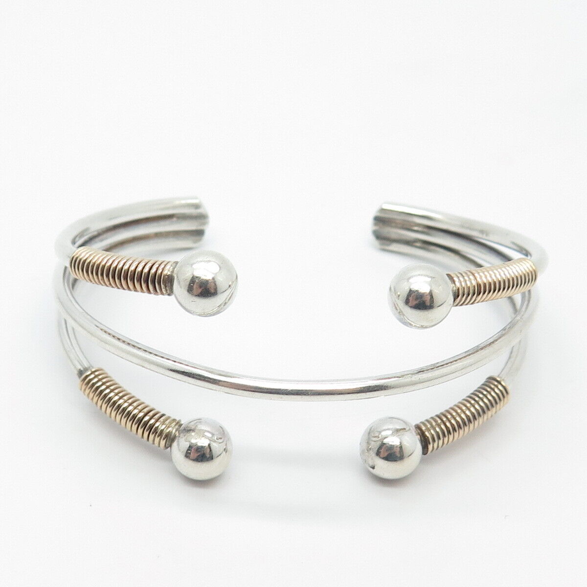 925 Sterling Silver 2-Tone Vintage Adjustable Ball Cuff Bracelet 6.5"