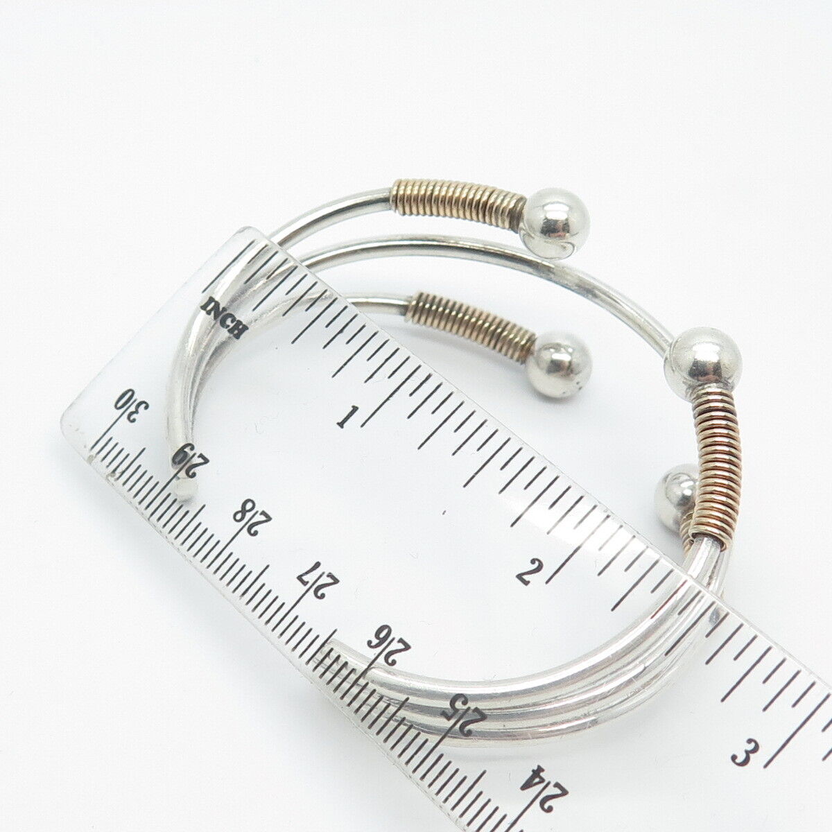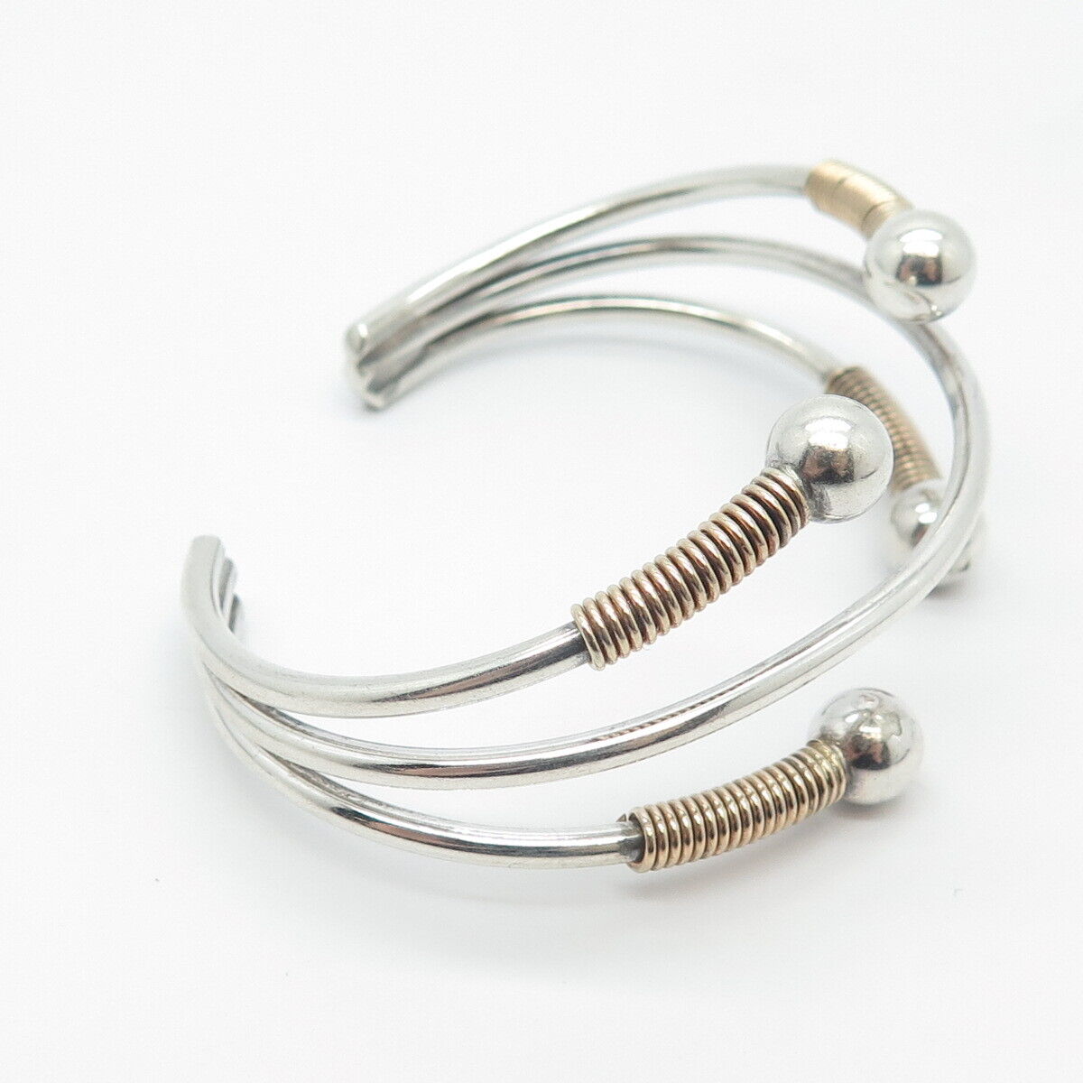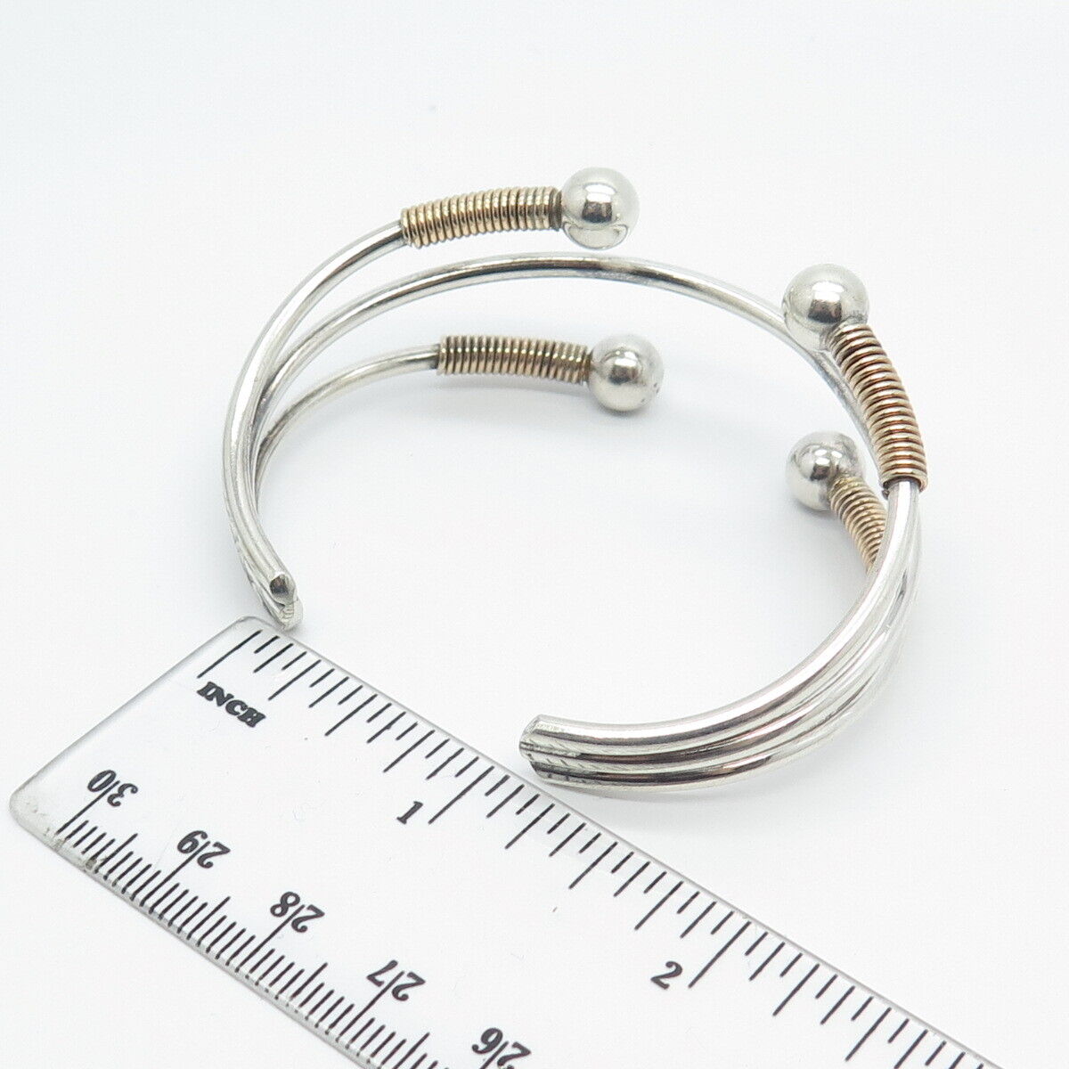 925 Sterling Silver 2-Tone Vintage Adjustable Ball Cuff Bracelet 6.5"