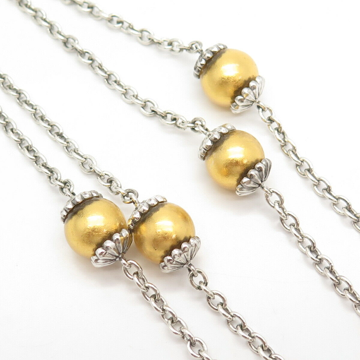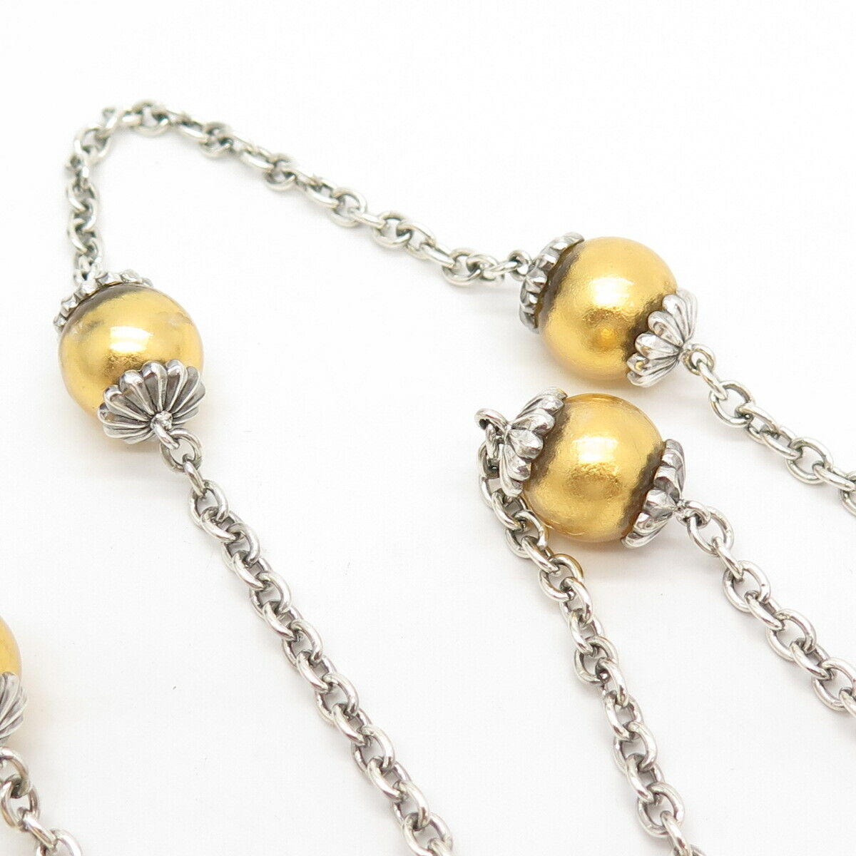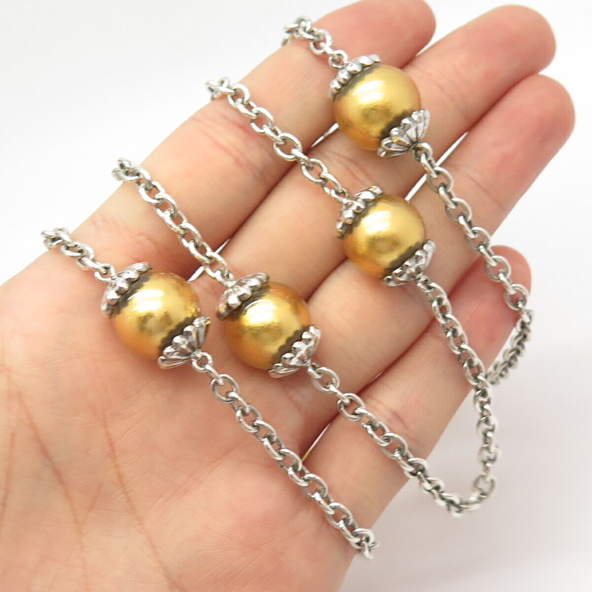 925 Sterling Silver 2-Tone Vintage Ball Station & Rolo Chain Necklace 19"