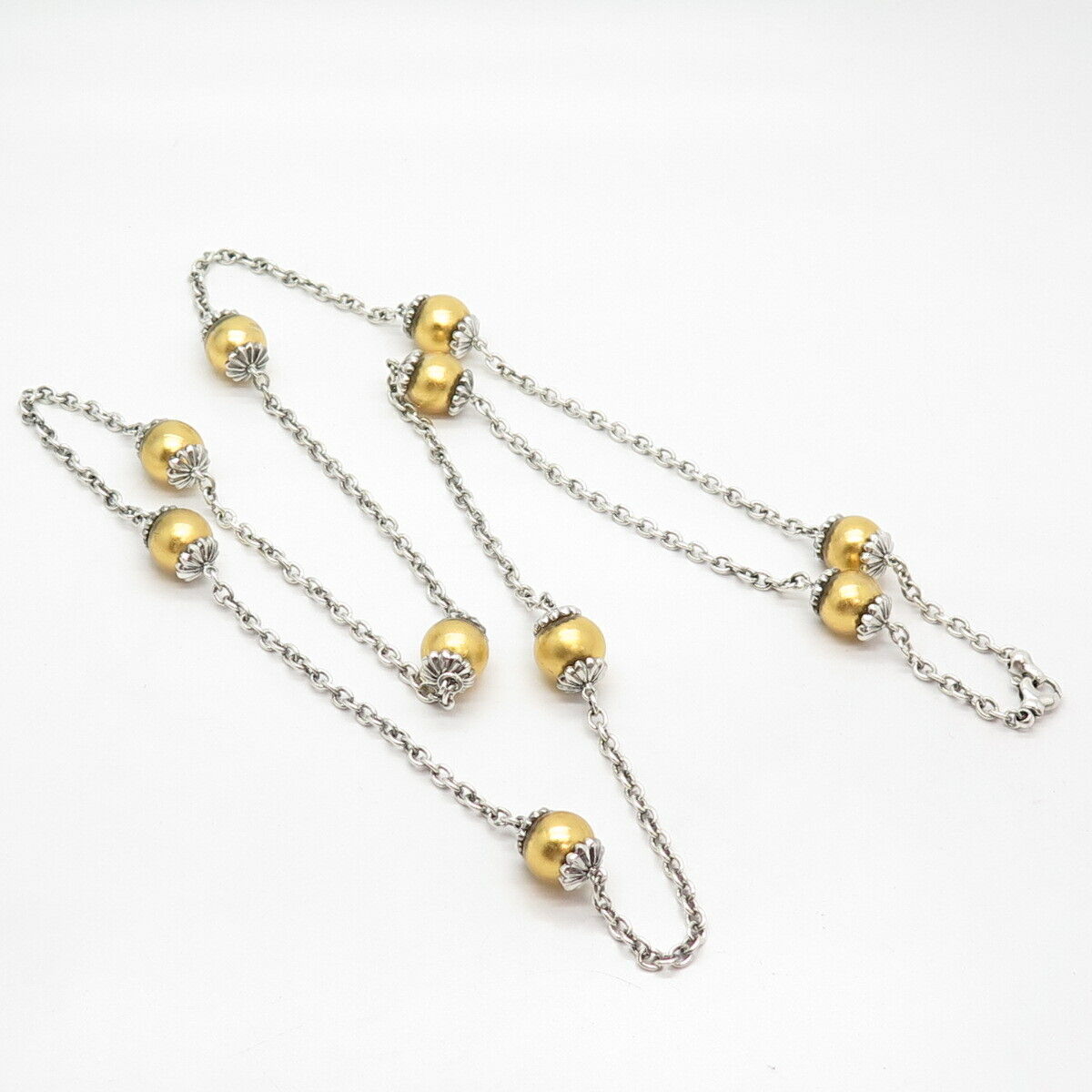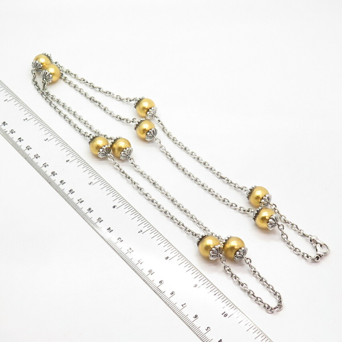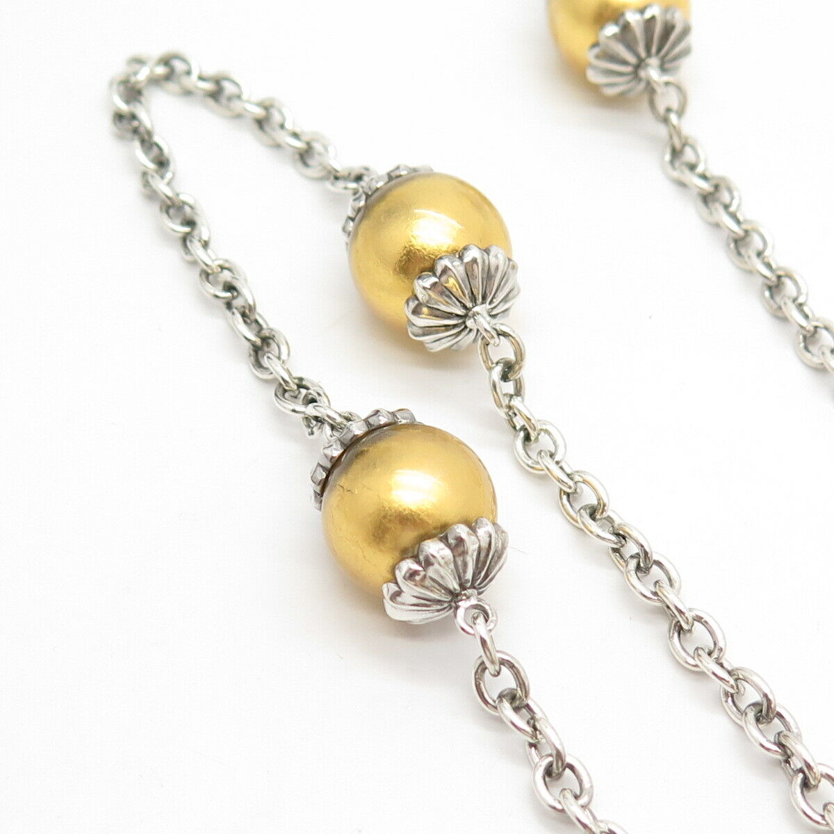 925 Sterling Silver 2-Tone Vintage Ball Station & Rolo Chain Necklace 19"