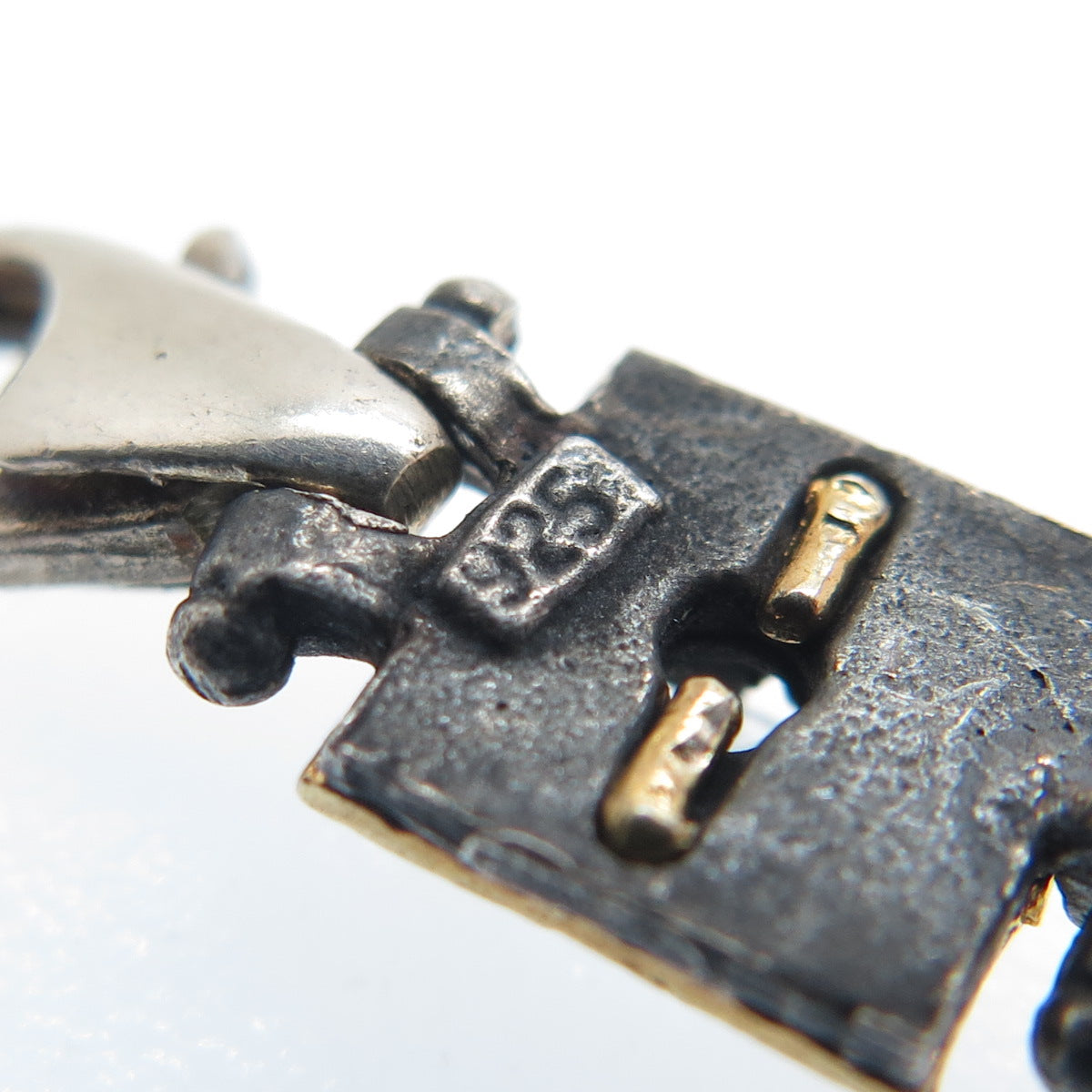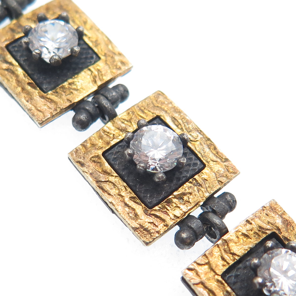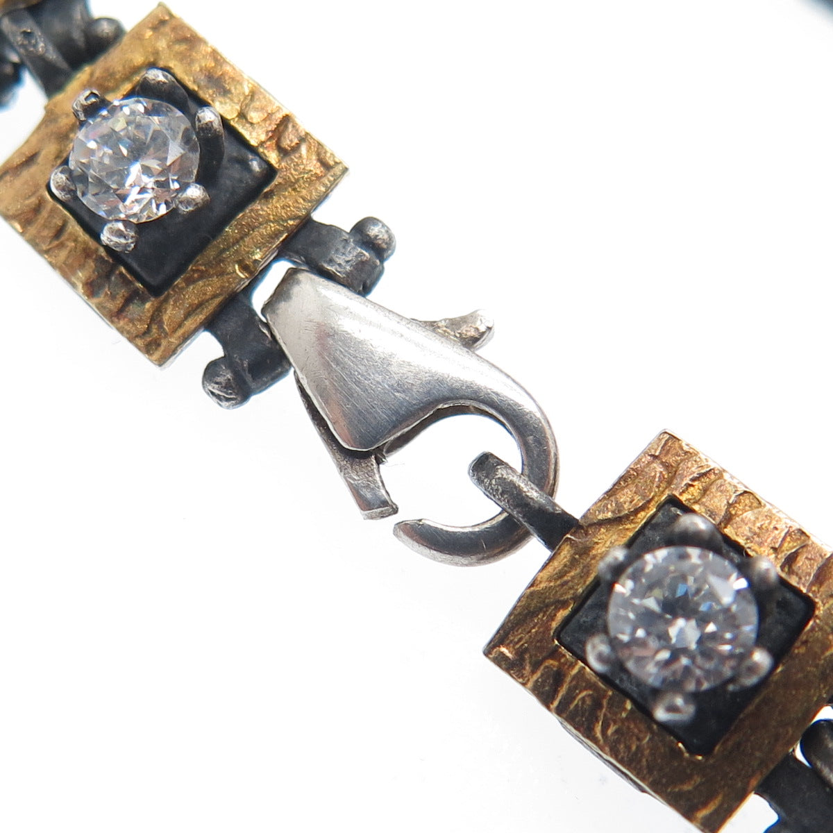 925 Sterling Silver 2-Tone Vintage C Z Modernist Panel Link Oxidized Bracelet 7"