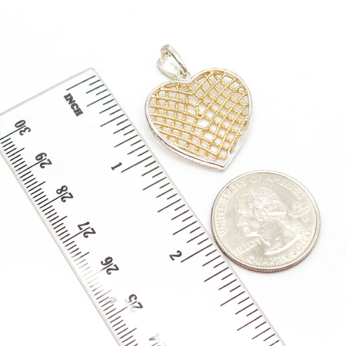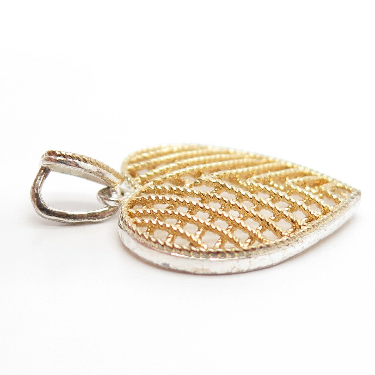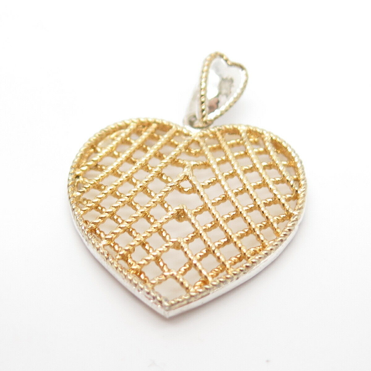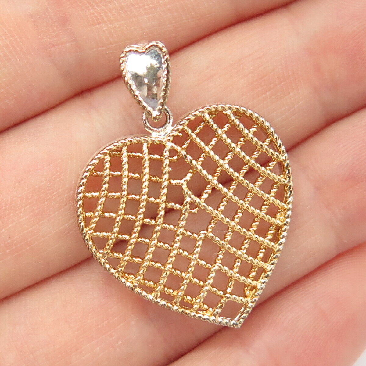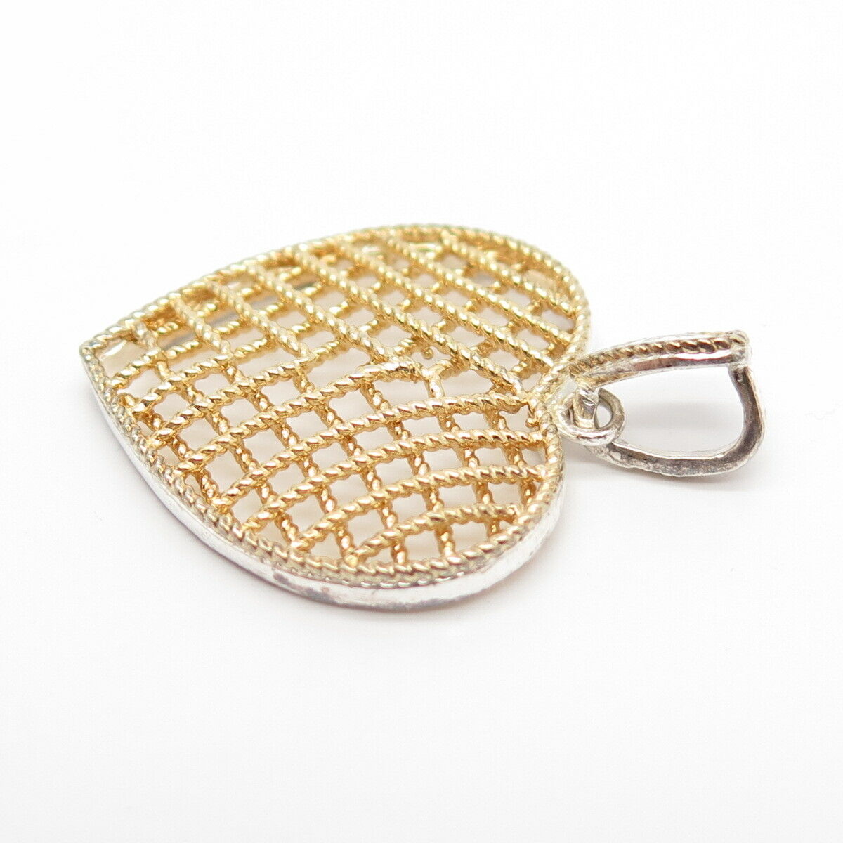 925 Sterling Silver 2-Tone Vintage Cage Heart Pendant