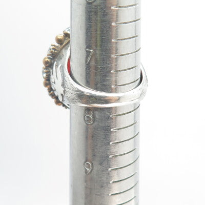 925 Sterling Silver 2-Tone Vintage Carnelian C Z Crown Tulip Flower Ring Size 8