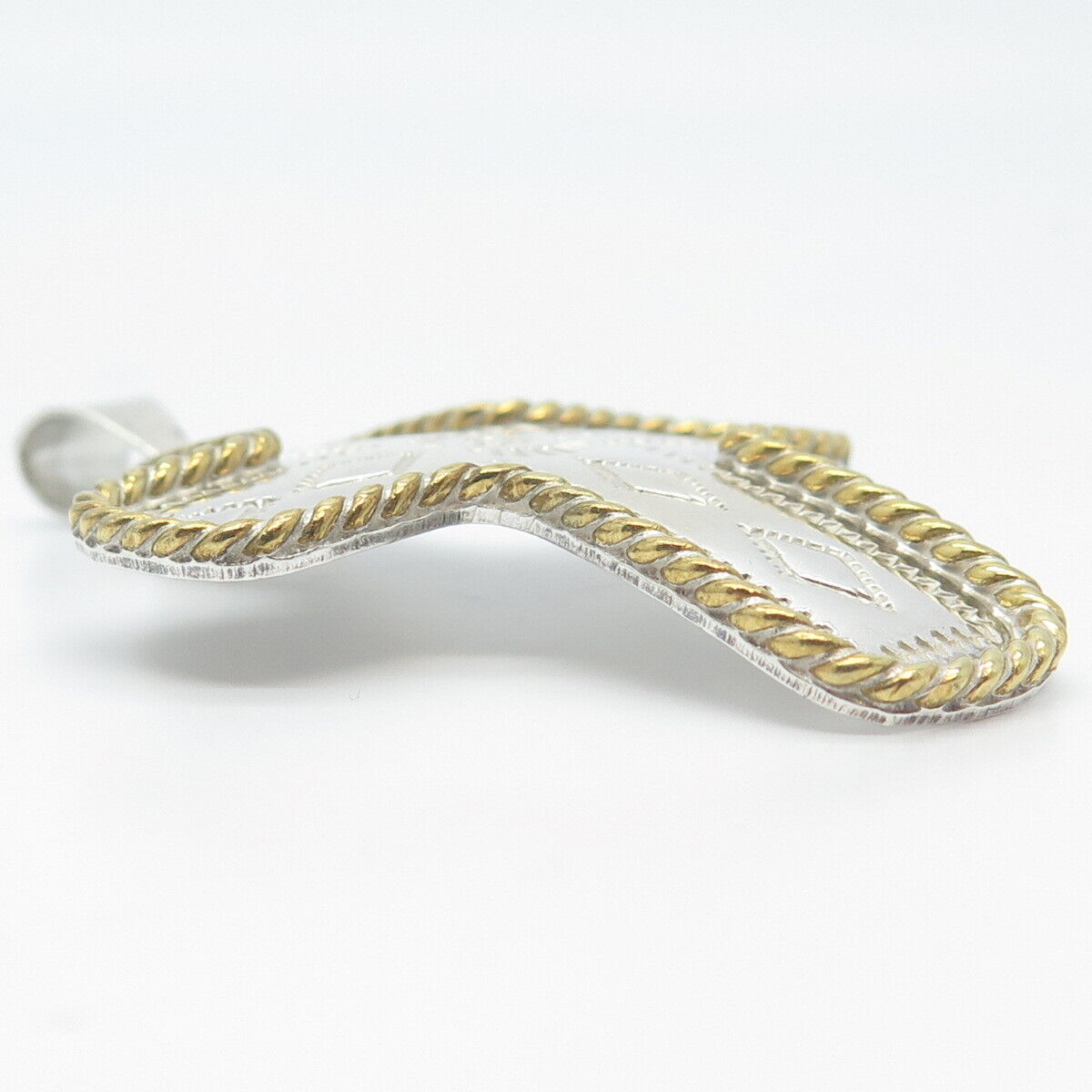 925 Sterling Silver 2-Tone Vintage Carved Ornate Cross Pendant