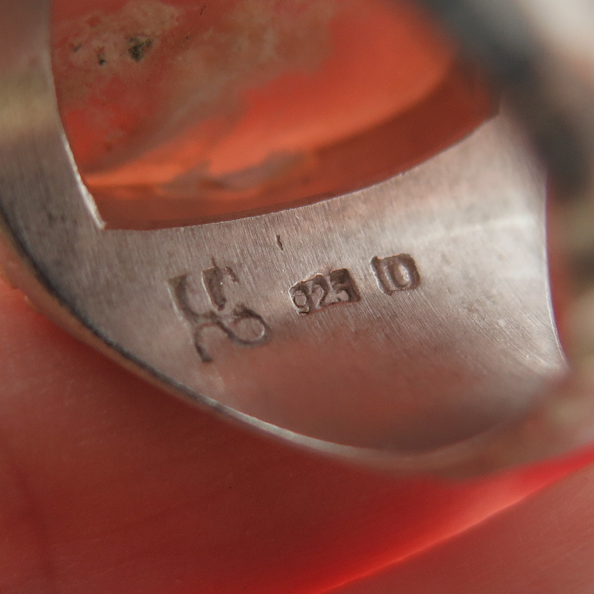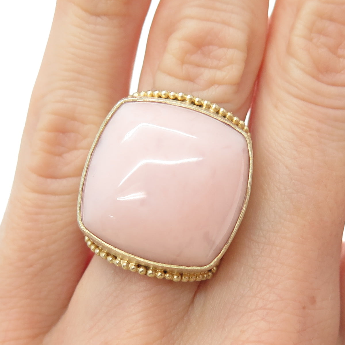 925 Sterling Silver 2-Tone Vintage HB Artisan Real Pink Opal Ring Size 5.25