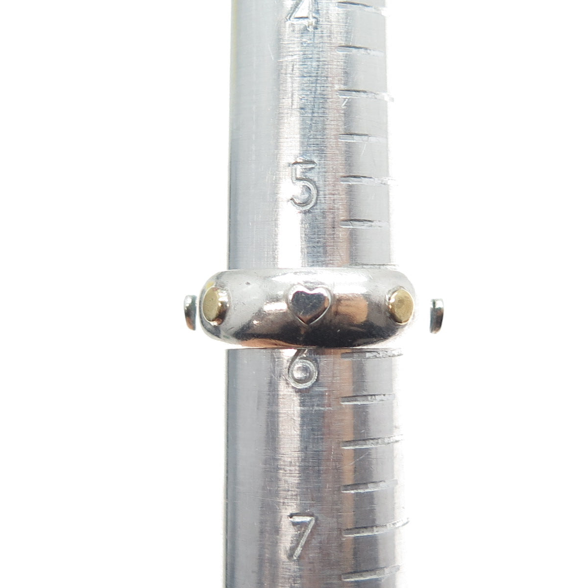925 Sterling Silver 2-Tone Vintage Heart Dotted Band Ring Size 6