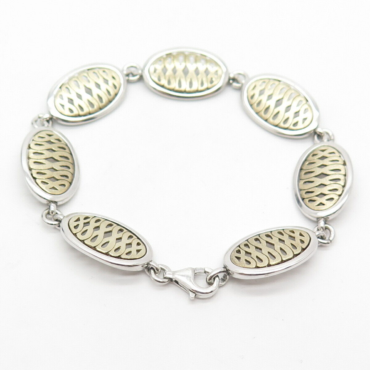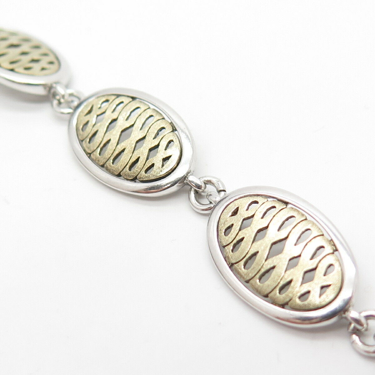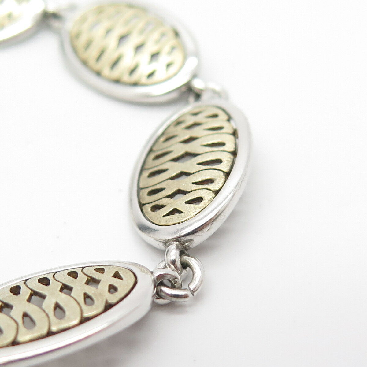925 Sterling Silver 2-Tone Vintage Infinity Link Bracelet 7 1/4"