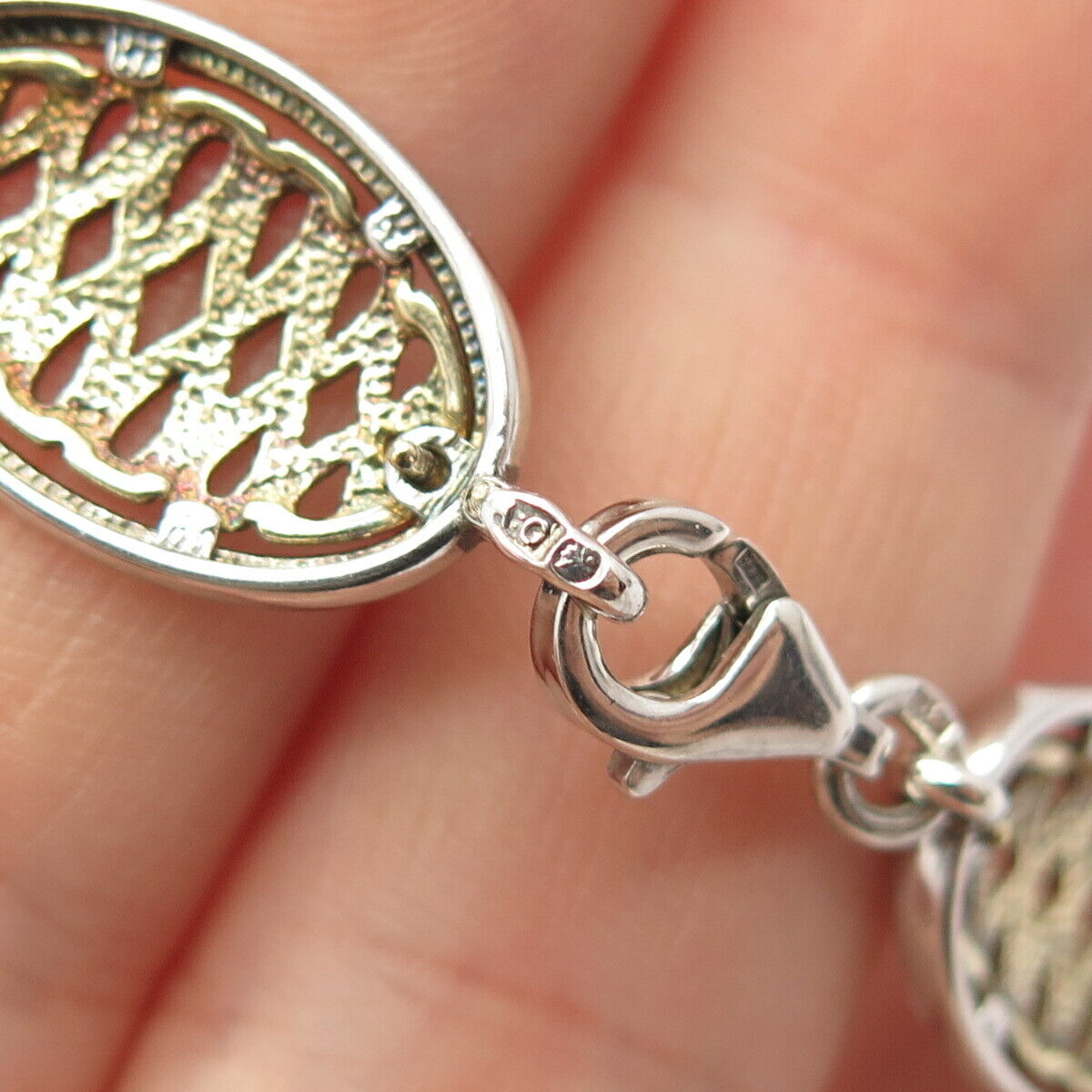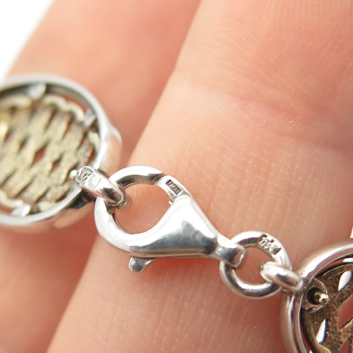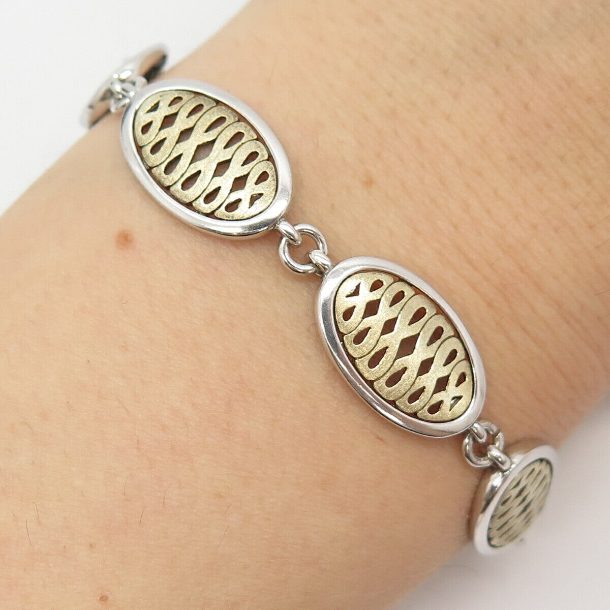 925 Sterling Silver 2-Tone Vintage Infinity Link Bracelet 7 1/4"