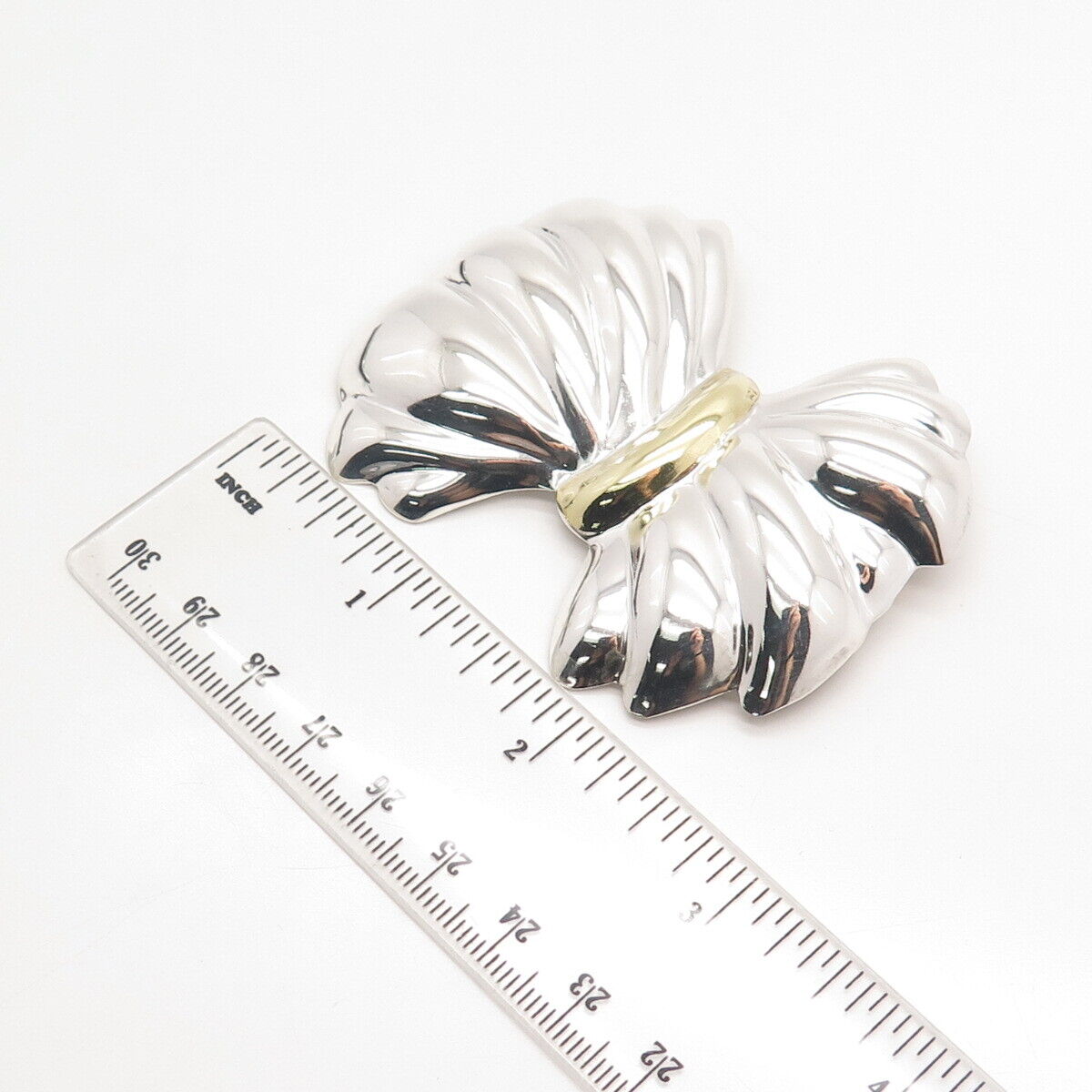 925 Sterling Silver 2-Tone Vintage Mexico Bow Pin Brooch