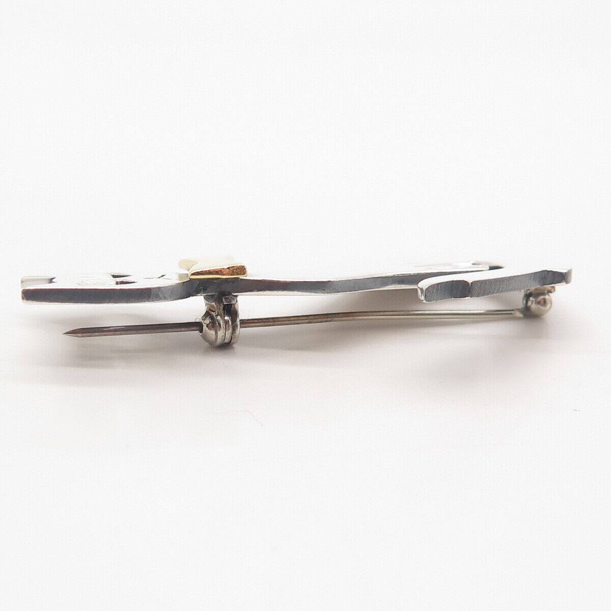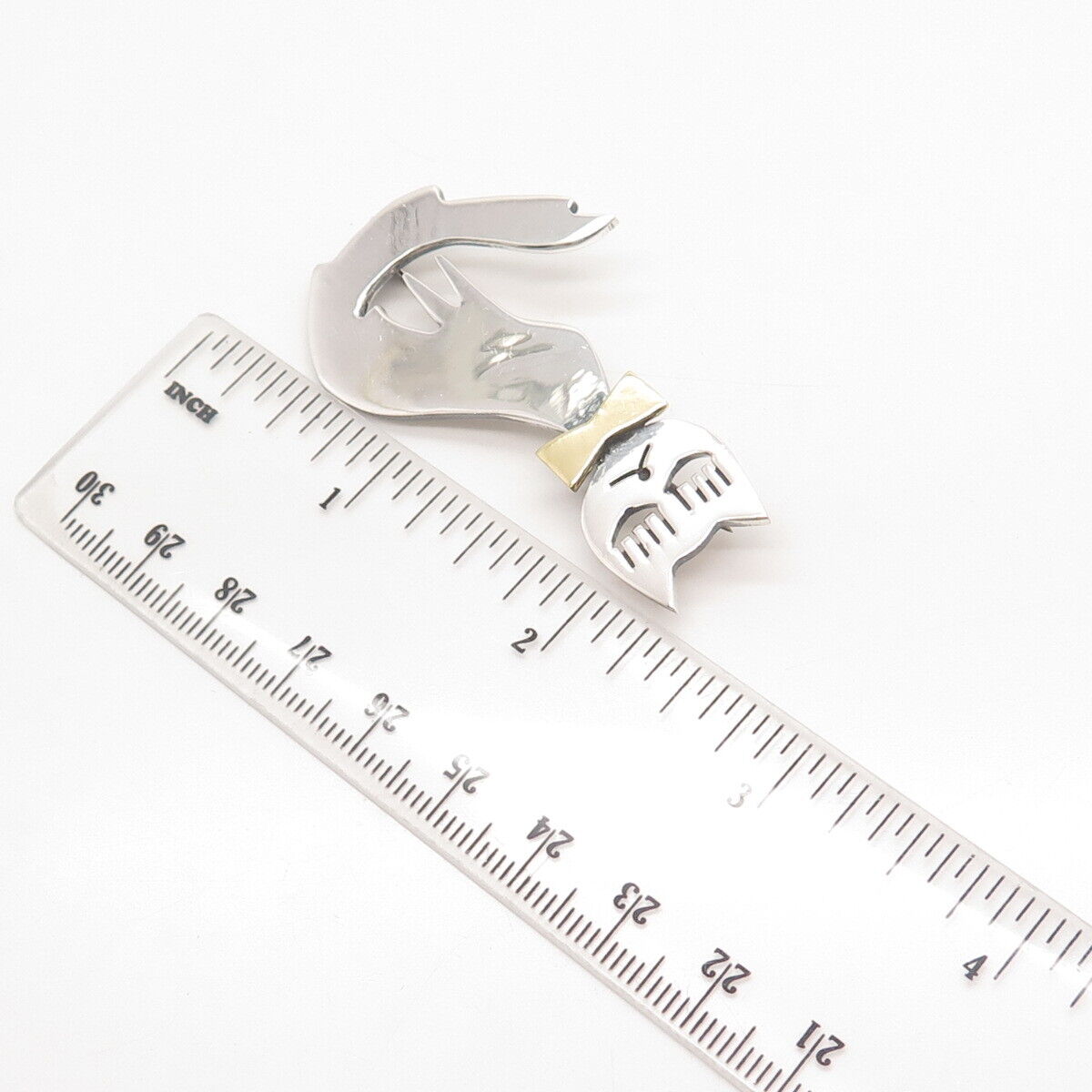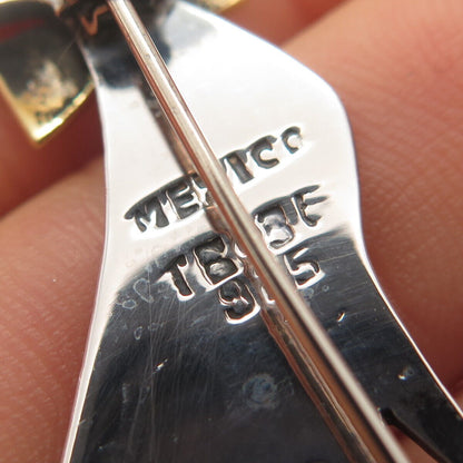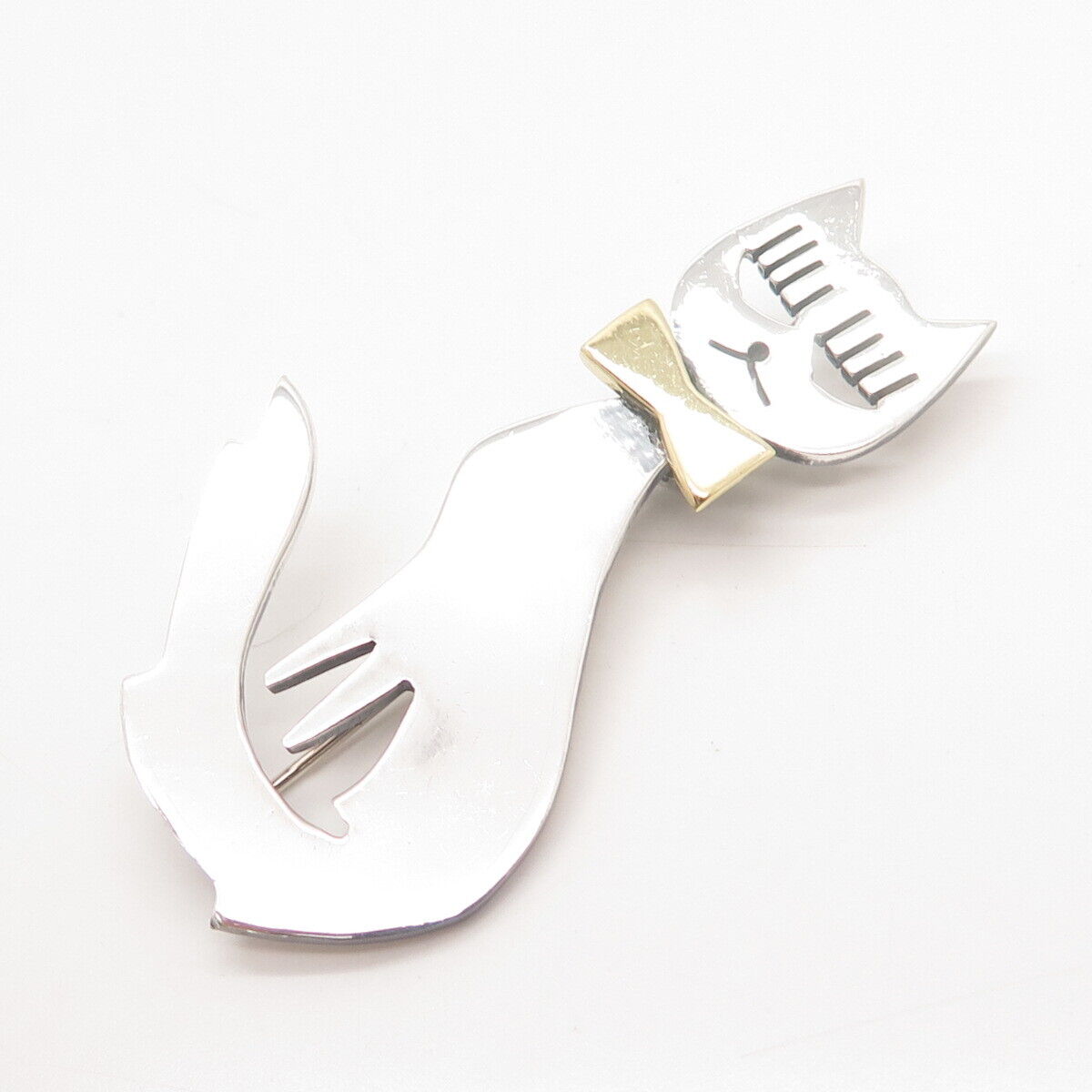 925 Sterling Silver 2-Tone Vintage Mexico Cat w/ Bow Pin Brooch