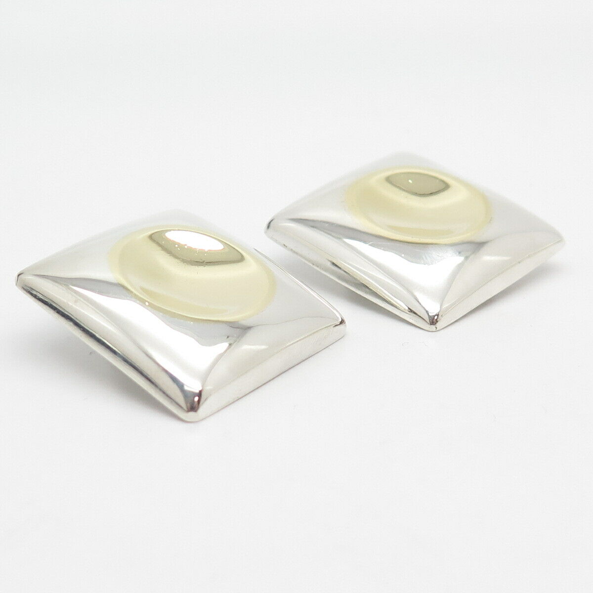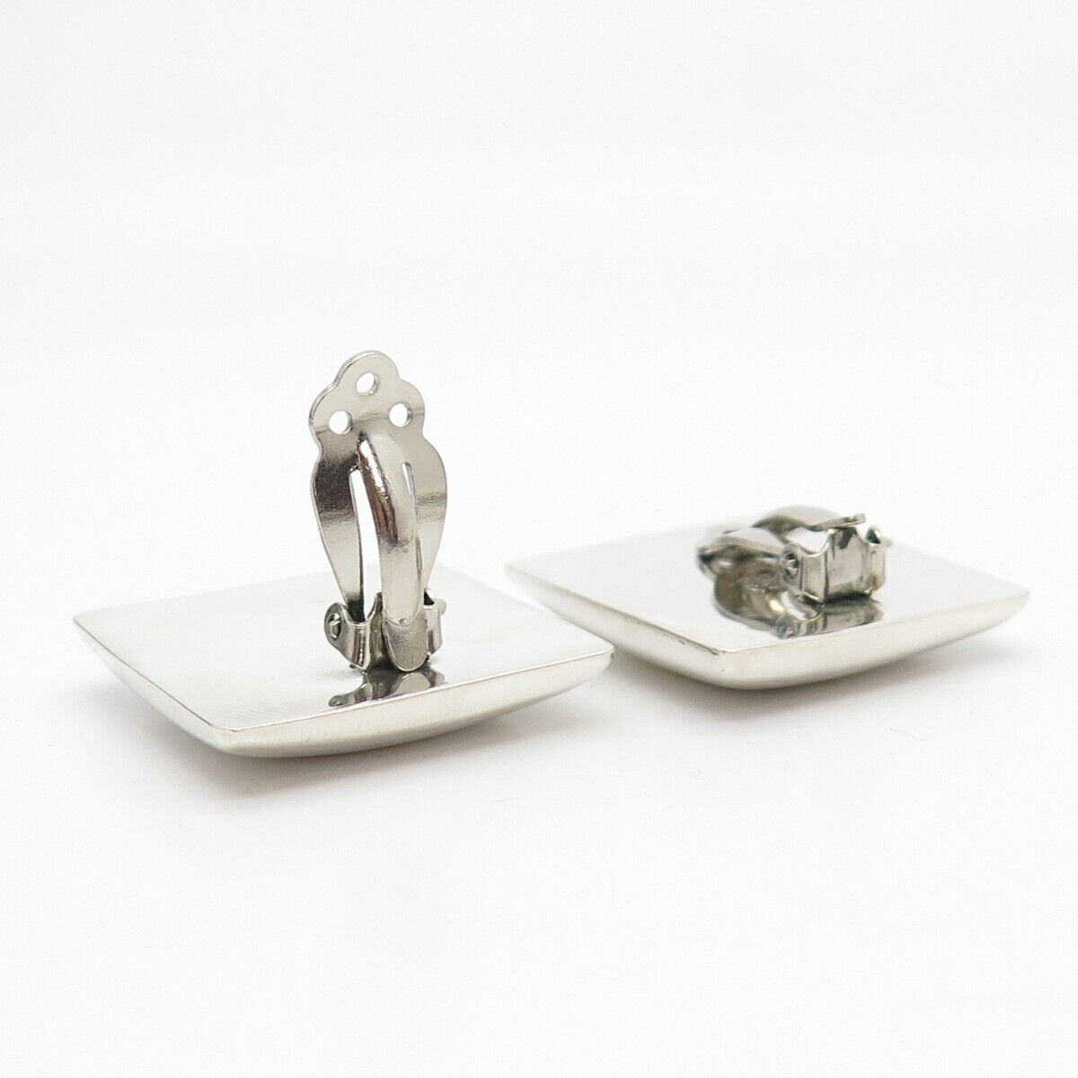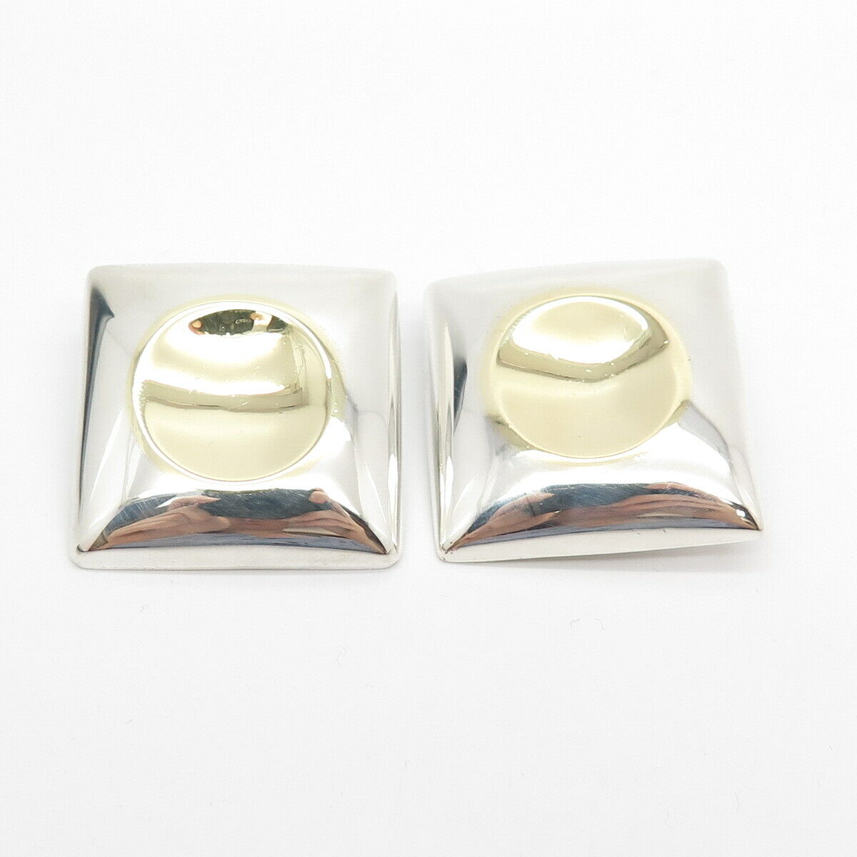 925 Sterling Silver 2-Tone Vintage Mexico Concave Clip On Earrings