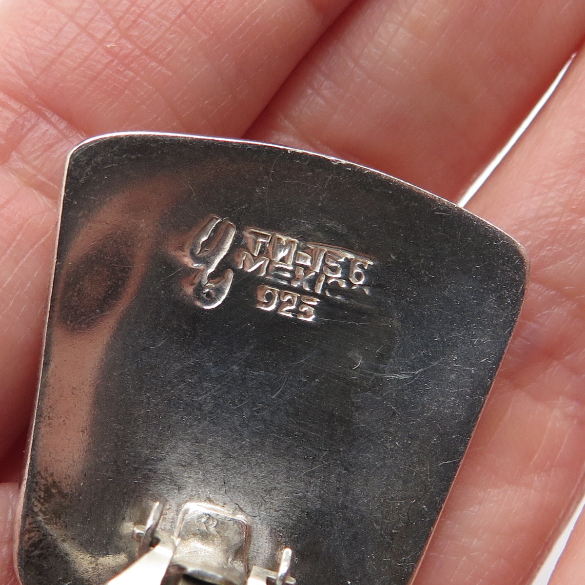 925 Sterling Silver 2-Tone Vintage Mexico Door Knocker Clip On Earrings